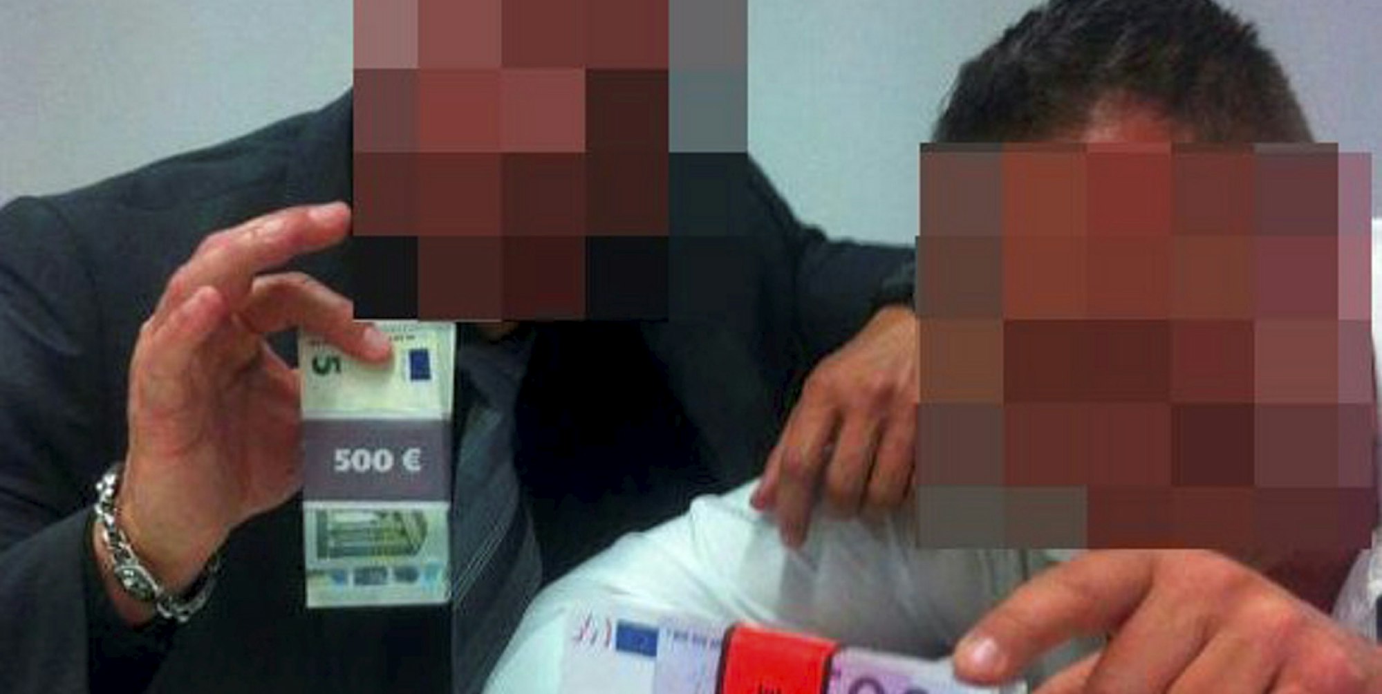 Bei einer Spielshow, bei der es 500 000 Euro zu gewinnen gab, sorgten die Mitarbeiter der angeklagten Firma für Sicherheit. Mit zu die Aufgaben zählte es das Bargeld in der Show zu sichern. Da lichteten die Mitarbeiter sich auch gerne mal mit dem Bargeld ab.