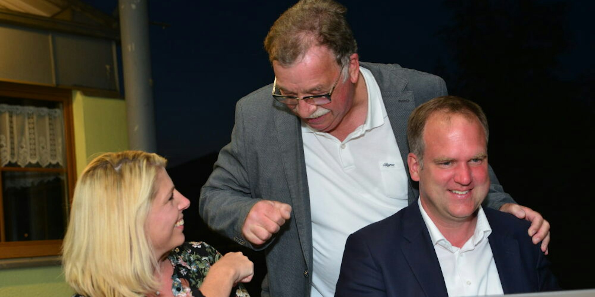 Über den Wahlsieg freuen sich CDU-Vorsitzende Gudrun Baer, Kandidat Reinhard Meyer und Bürgermeister Dirk Breuer.