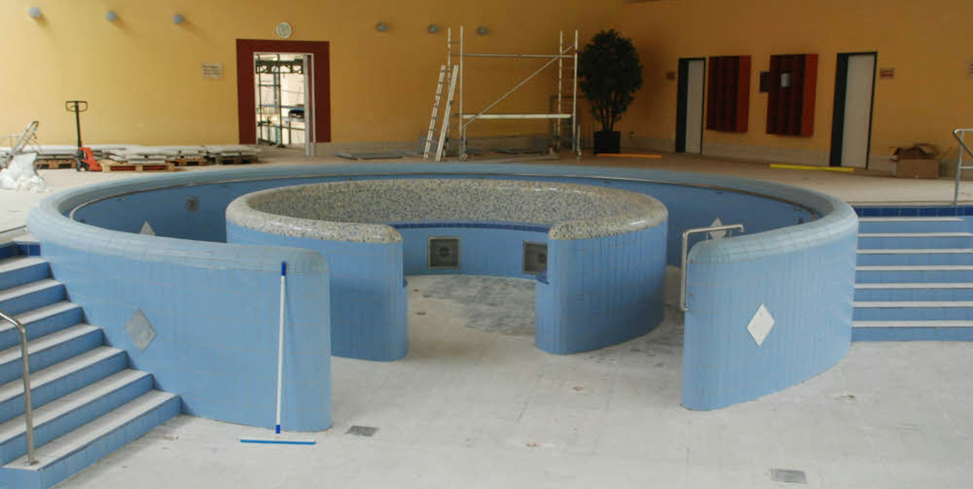 Komplett entfernt wurden die Bodenfliesen im Erlebnisbecken des Familienbads. Nach Ostern soll neu gefliest werden.