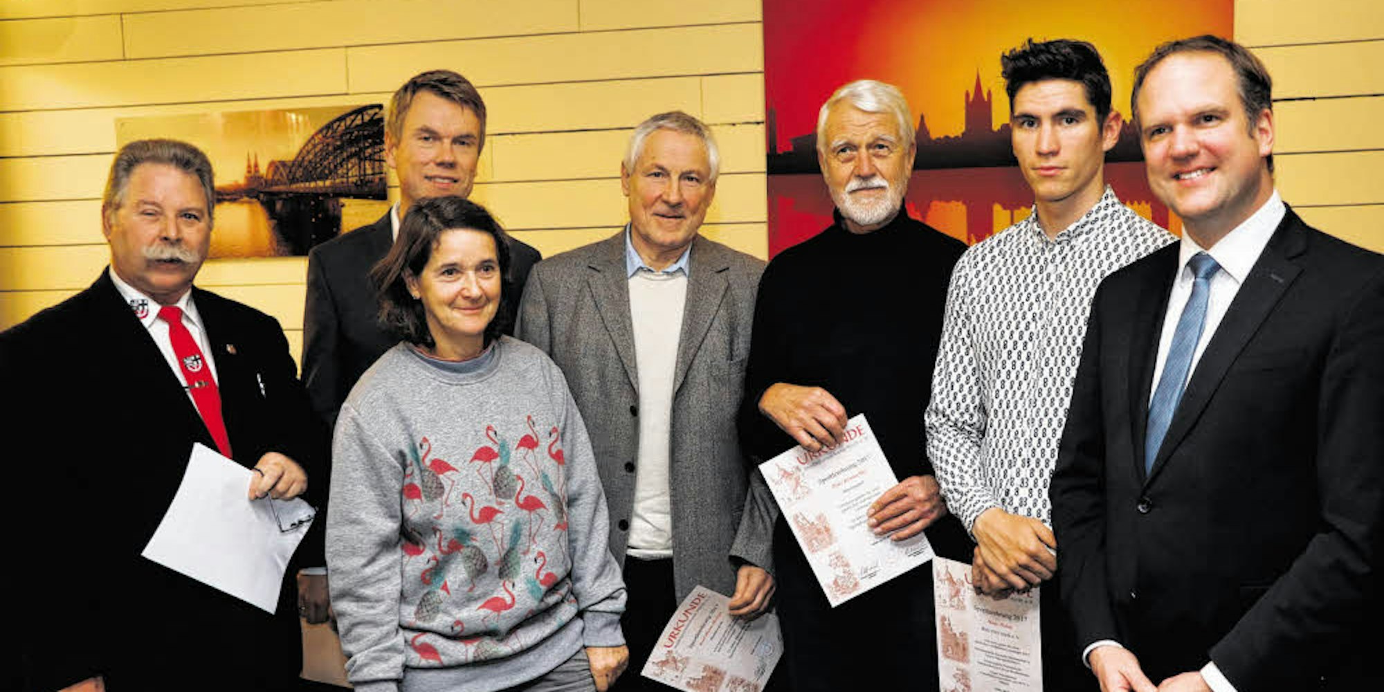 Ein weiterer Sportler, der 2017 hervorragende sportliche Leistungen erbracht hatte, wurde geehrt: Hans Pirius, Jahrgang 1992, hat als Radrennfahrer 2017 in der Kategorie Elite-Klasse A bei Straßen- und Steherrennen drei Siege und 36 Platzierungen auf den ersten 15 Rängen errungen. Pirius ist nicht erst jetzt so erfolgreich, er war, wie er stolz erzählte, in Hürth wegen seiner guten Ergebnisse auf dem Rennrad schon einmal Sportler des Jahres. (mrz)