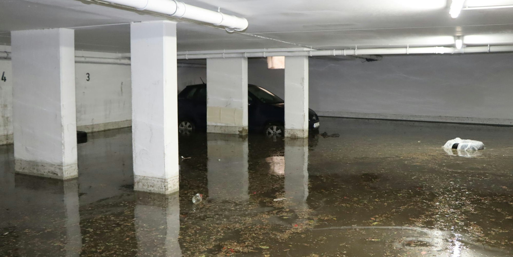 Unter Wasser stand die Tiefgarage am Hürther Bogen nach dem Starkregen.