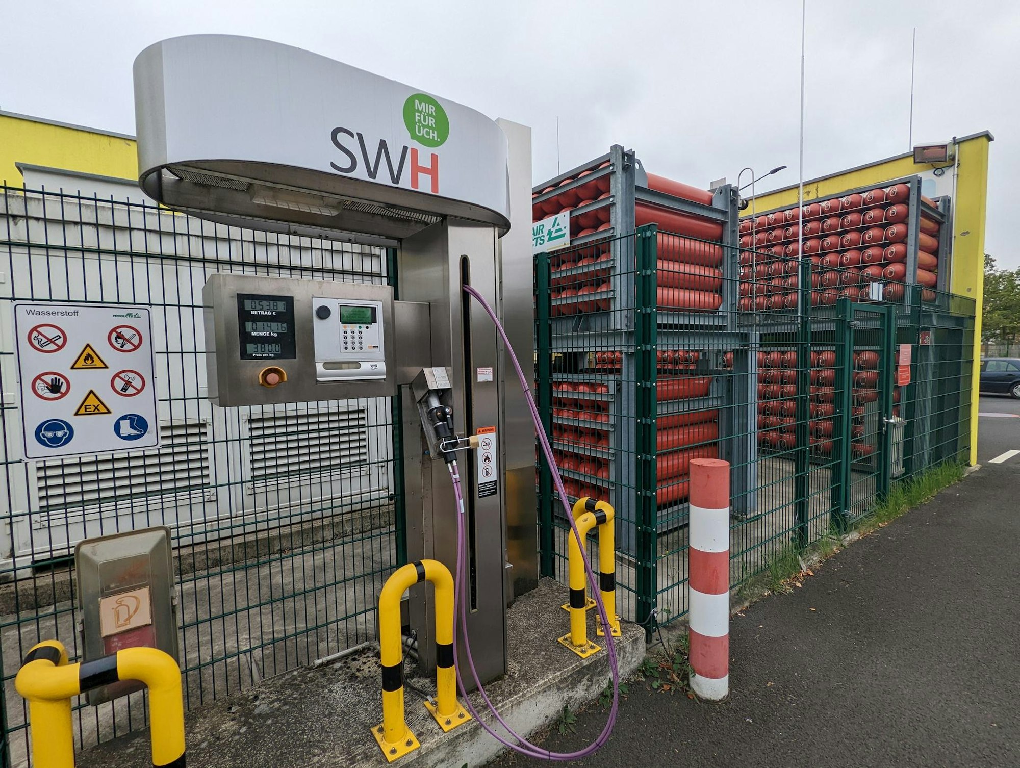 Deshalb soll eine zweite Wasserstofftankstelle für Busse, Lastwagen und Pkw her. Im September 2021 unterschrieben die Stadtwerke einen Vertrag mit dem Industriegasunternehmen Air Products. Das Unternehmen aus Hattingen hat bereits die Tankstelle am Chemiepark errichtet und erweitert und soll in Hermülheim nun auch den Betrieb übernehmen. Der Standort an der Eschweiler Straße wurde auch wegen der Nähe zum Betriebshof von Schilling Omnibusverkehr an der Bonnstraße gewählt, wo die RVK, die im Auftrag der Stadtwerke fährt, die Stadtbusse parkt und wartet.