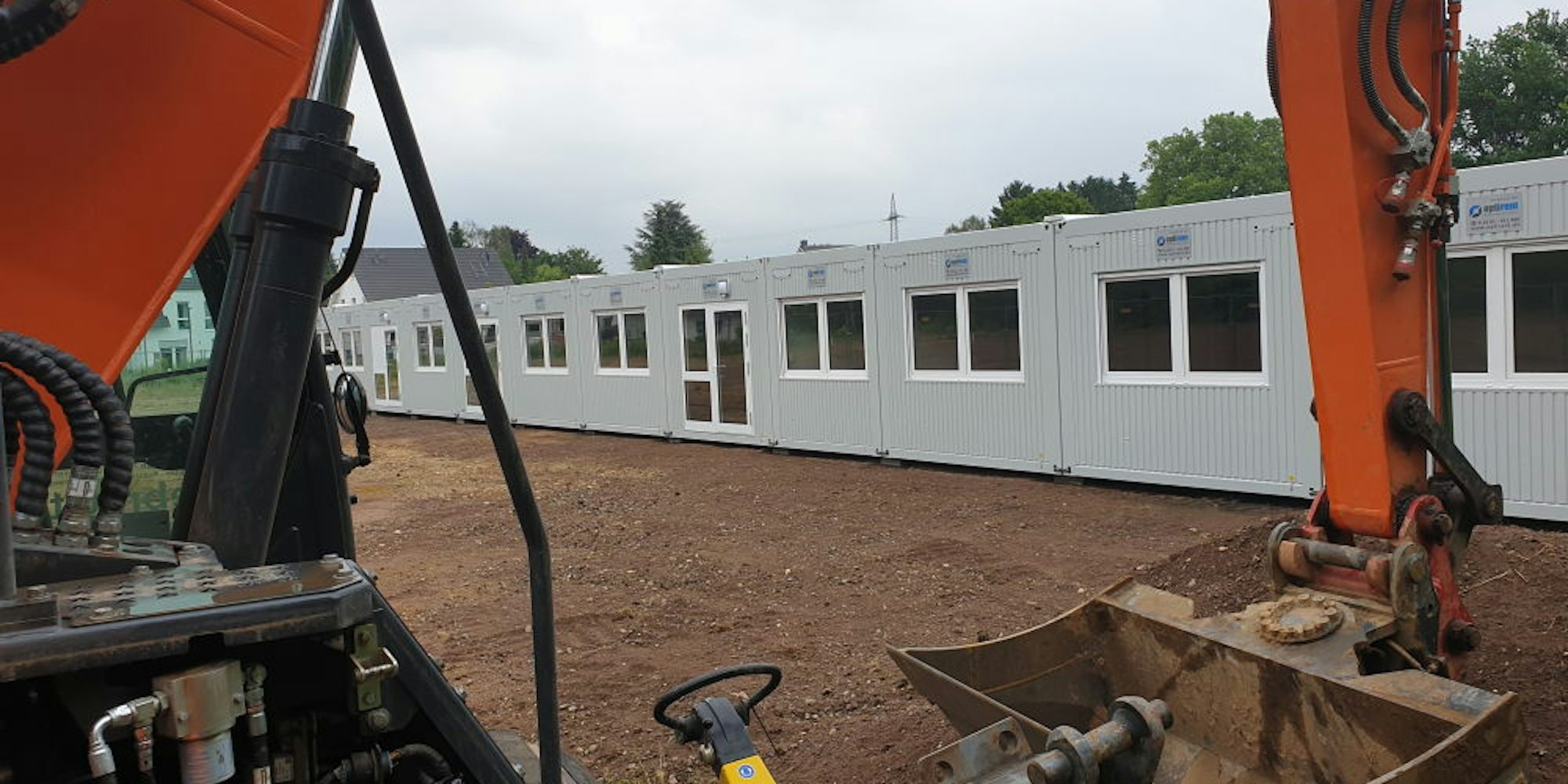 Die Container stehen bereits auf dem ehemaligen Sportplatz in Kalscheuren. Zum neuen Kindergartenjahr findet die Kita Kinderwelt dort eine provisorische Unterkunft.
