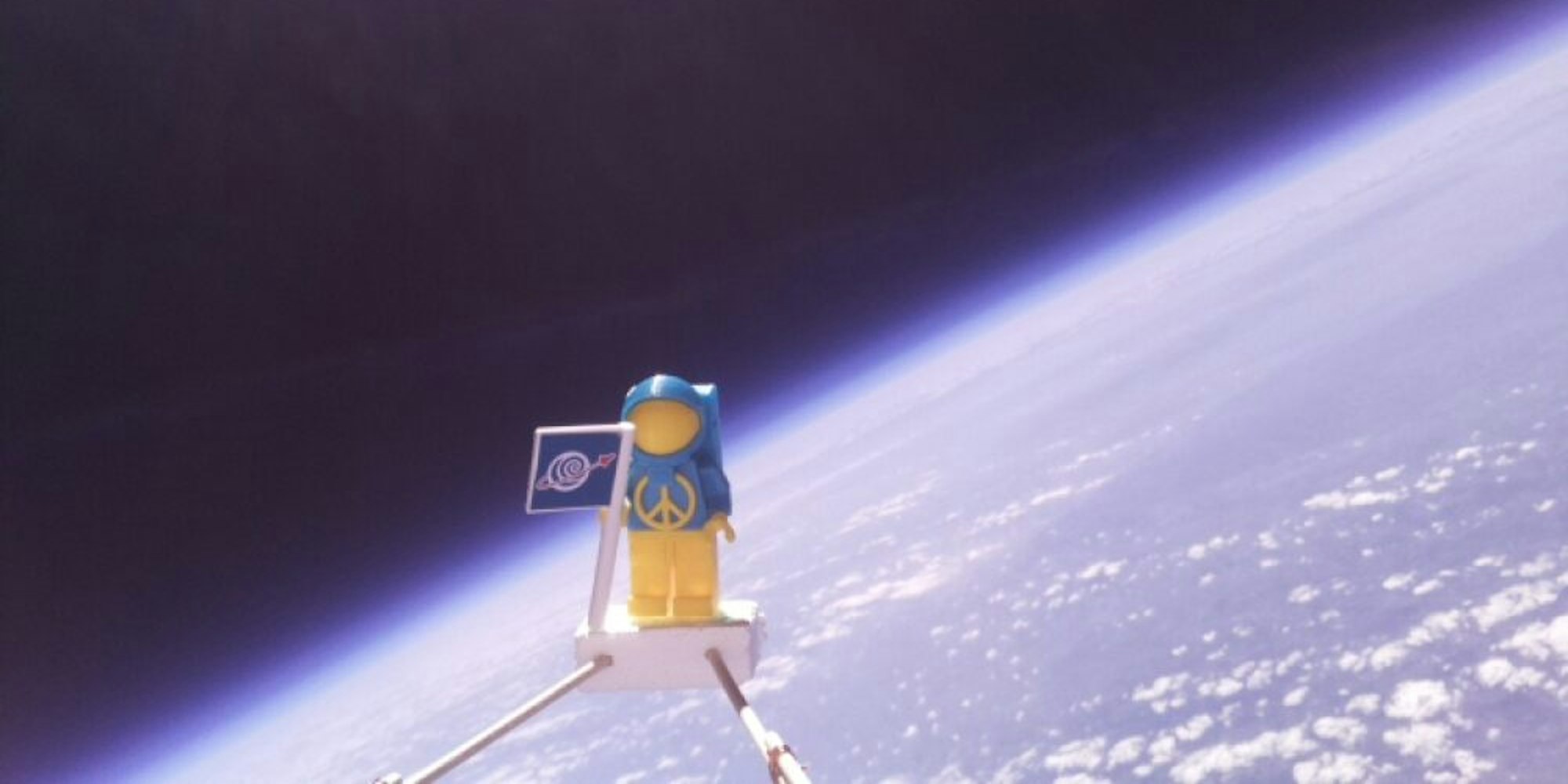 Die Weltraumsonde brachte unter anderem dieses Bild mit, das den Astronauten, den die Schüler eigens in ukrainischen Farben gefertigt hatten, hoch oben in der Stratosphäre zeigt.