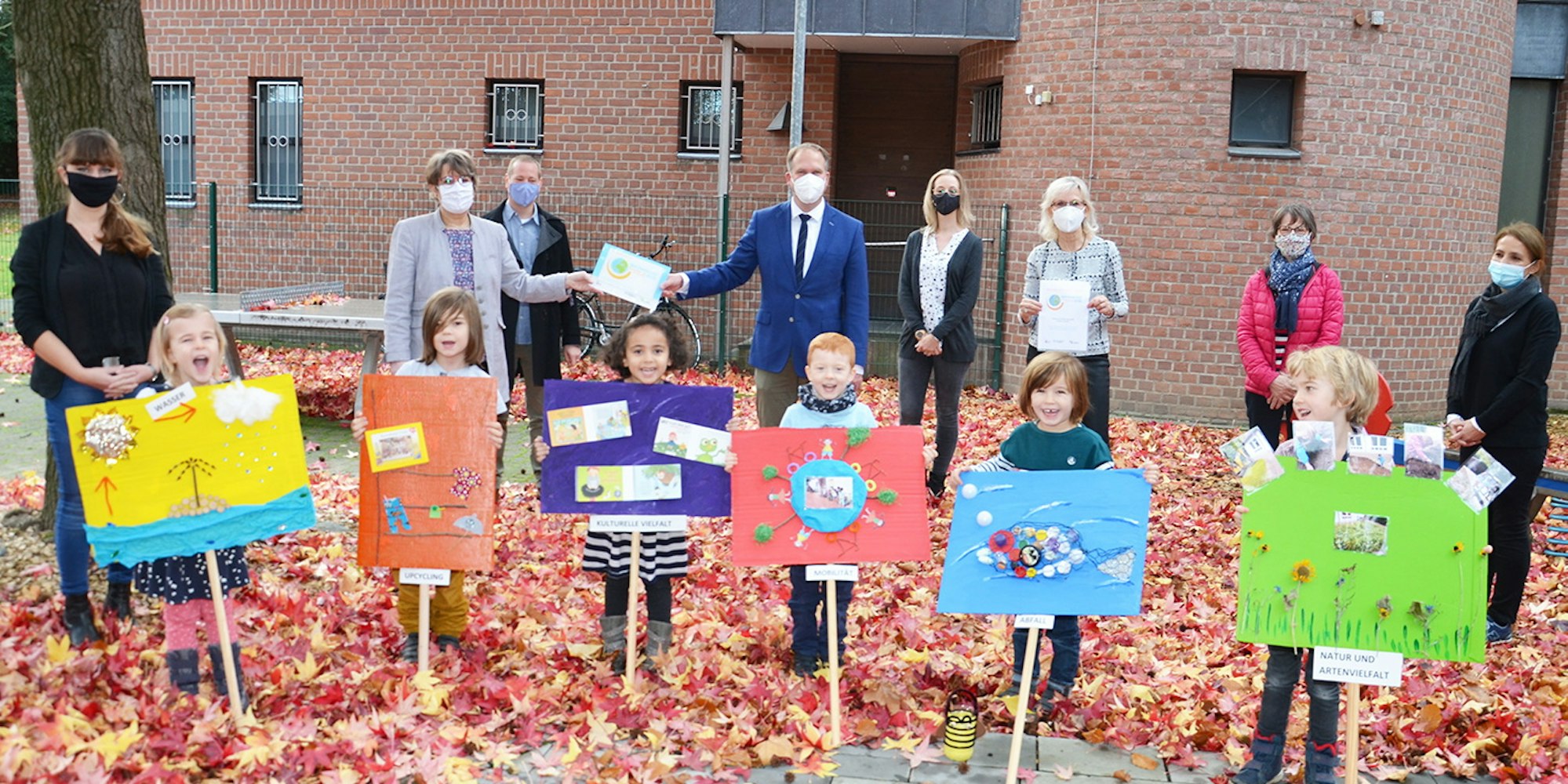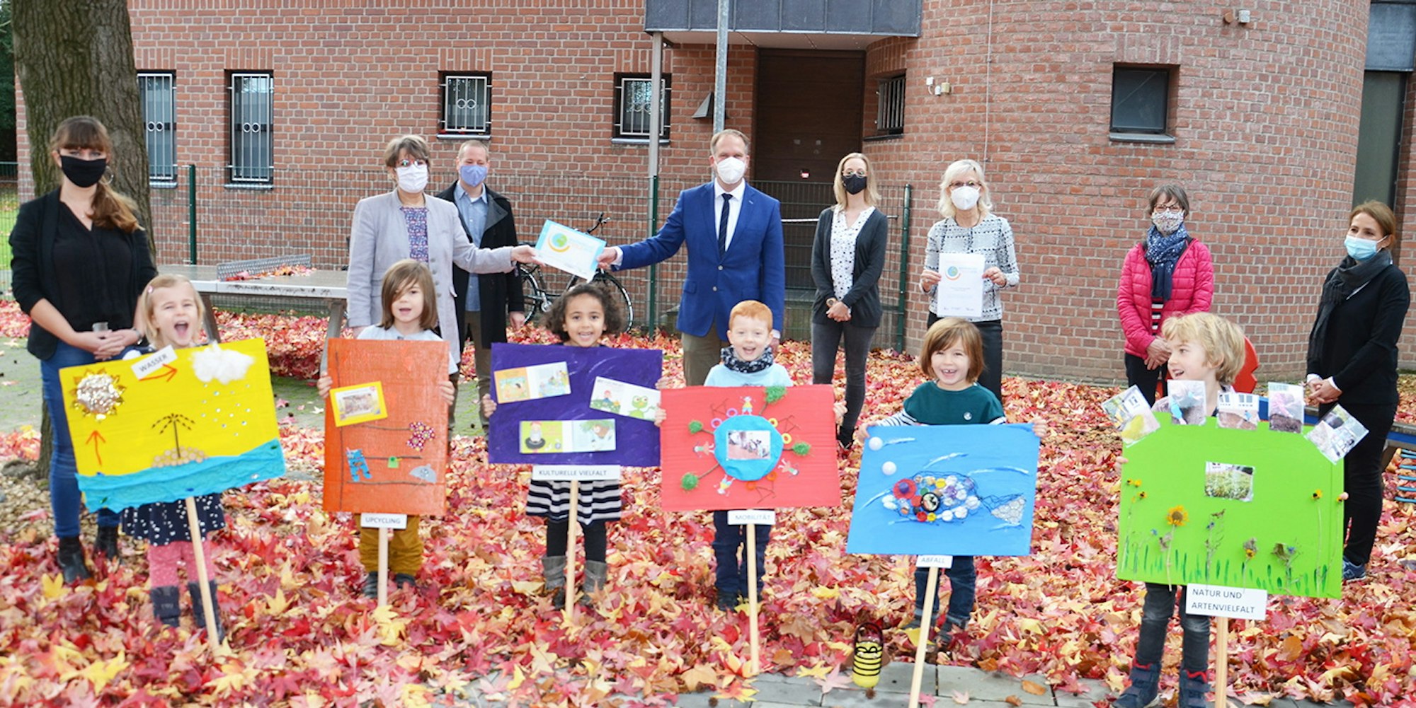Die Kita Hürther Strolche bietet den Kindern vielfältige und faszinierende Einblicke in die Natur. So werde die Basis dafür geschaffen, dass sich die Kinder aktiv für Umwelt- und Klimaschutz einsetzten können, betonte Edith Klingsporn. Die Hürtherin verantwortet das Zertifizierungsprojekt im Bonner Wissenschaftsladen und nahm nun die Auszeichnung im Familienbüro Mittendrin an der Bonnstraße vor. Die Feierstunde mit Präsentation der Projekte wurde dorthin verlegt, um die Corona-Auflagen zu Abstand und Hygiene einhalten zu können.