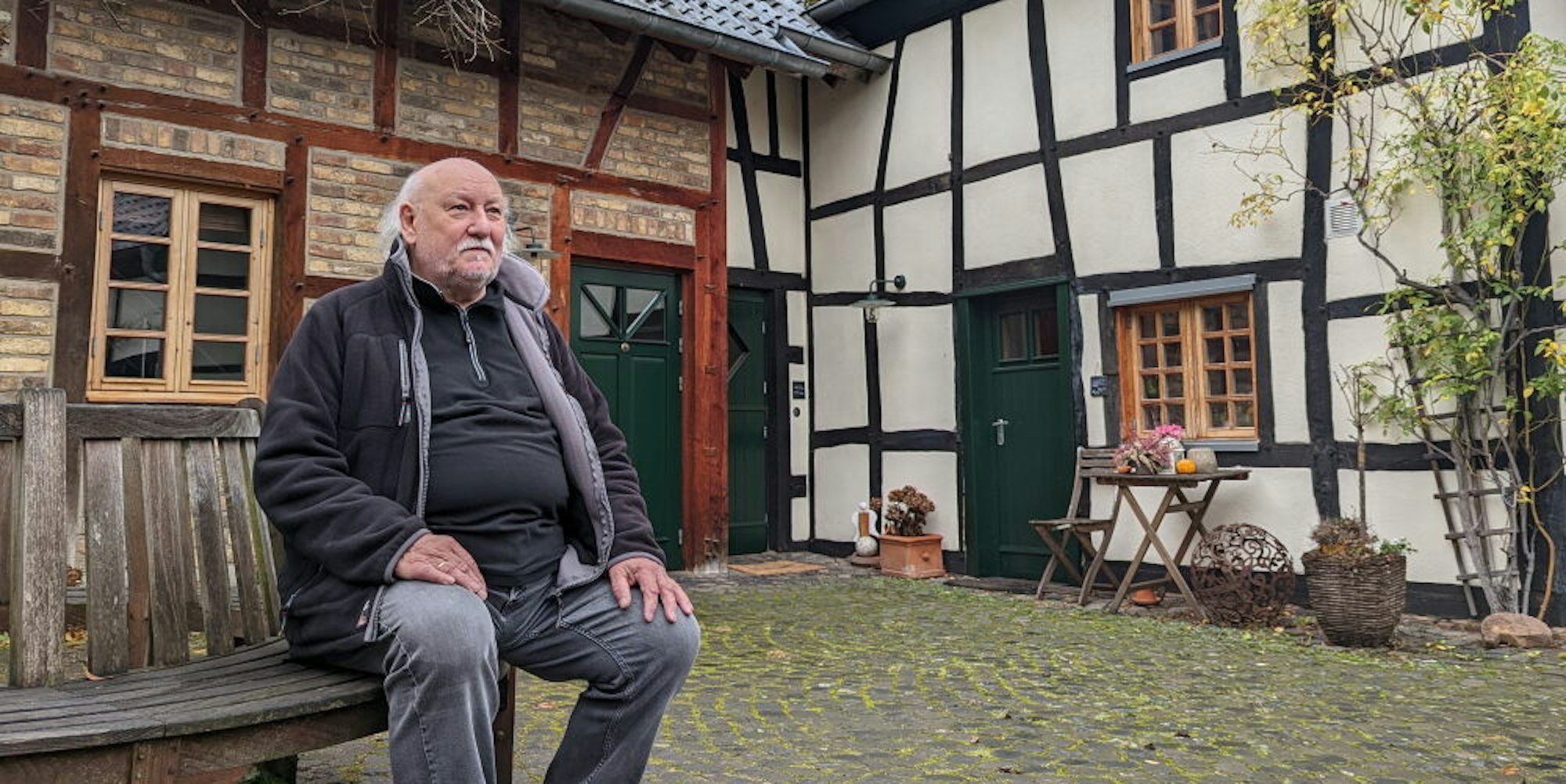 Die neue Brücke war Voraussetzung dafür, dass Fölling, der die Fachwerk- und Ziegelgebäude aus dem 18. und 19. Jahrhundert 1988 gekauft, zwölf Jahre lang aufwendig saniert und in Wohnungen umgebaut hatte, eine Baugenehmigung für sein neues Wohnhaus über dem alten Gewölbekeller unweit des Bachlaufs bekam. Seit 2018 wohnt der 72-Jährige dort mit seiner Frau.