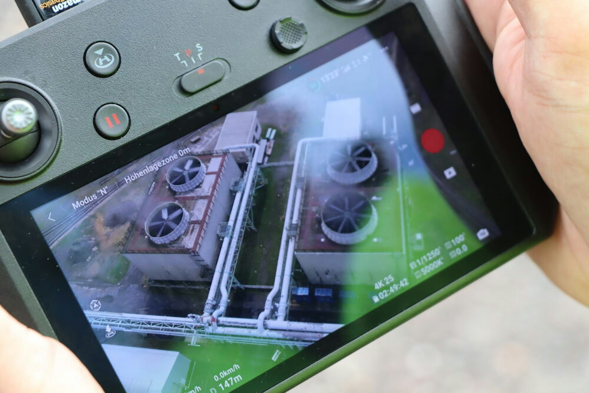 Sogar Aufnahmen mit der Wärmebildkamera seien möglich. So könnten aus der Luft auch kleinste Materialveränderungen erkannt werden. Auf dem Bildschirm seiner Fernbedienung sieht Baumgarten genau das, was auch die elektronischen Sensoren der Drohne erfassen.