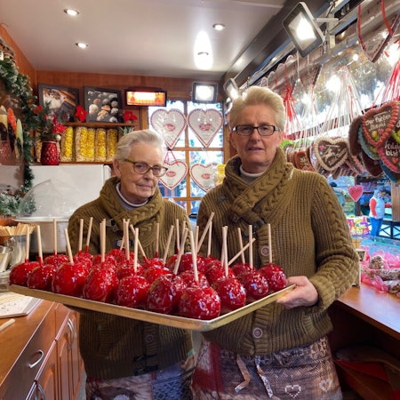 Thomas Horst und seine Frau Sarah Nicolay-Horst brauchen wenige Handgriffe, um aus der Knipperstraße in Berrenrarth einen Mini-Weihnachtsmarkt zu machen. Ihr Transporter funkelt weihnachtlich, im Kamin prasselt ein Feuer. Und dann zieht mit dem köstlichen Duft von Glühwein, Zimt, gebrannten Mandeln, Kakao und Kinderpunsch ein Hauch von Weihnachtsmarkt durch die Straße.