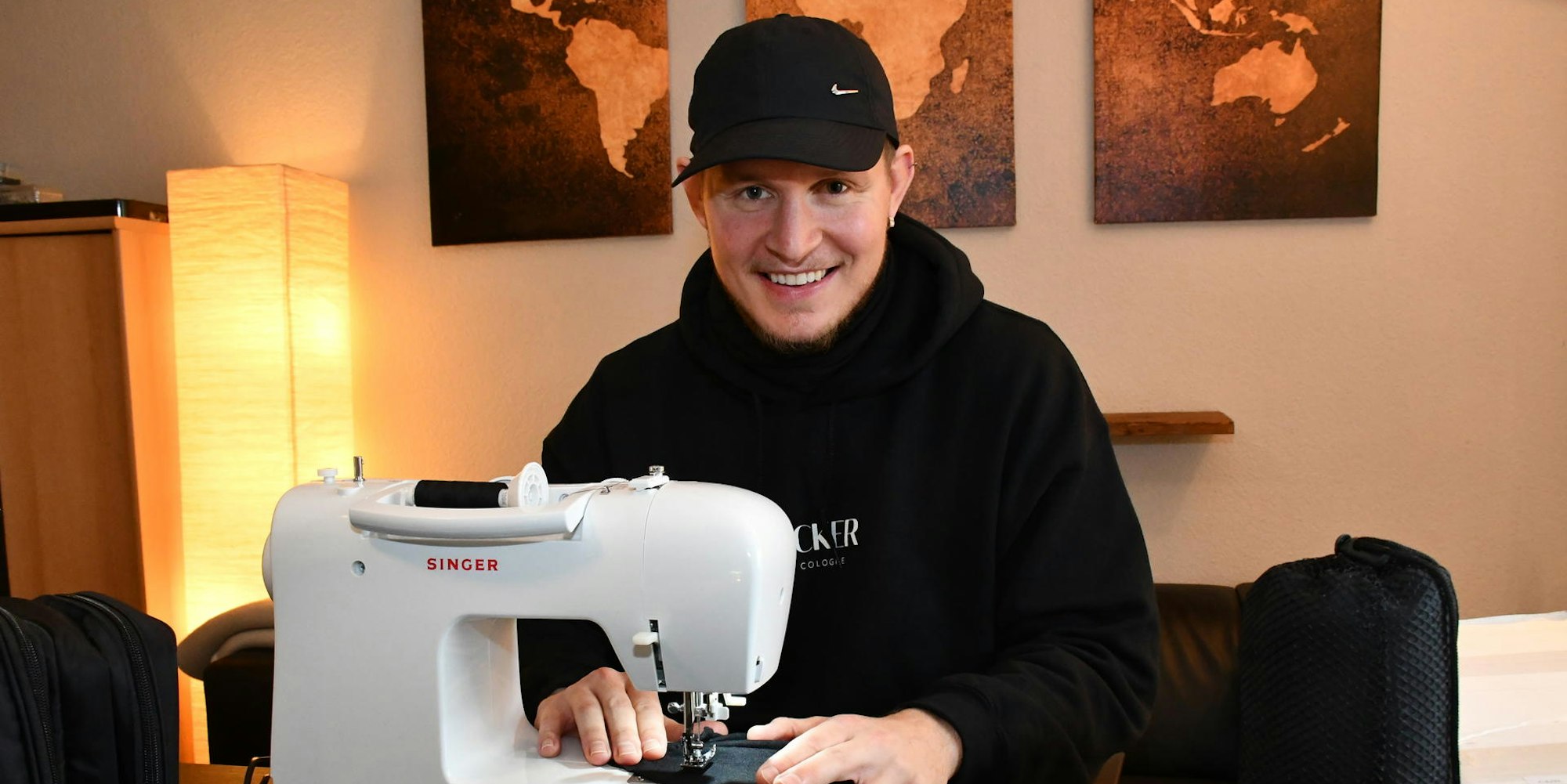 Hürth – Manchmal hat man Pech. So wie Gründer und Erfinder Nils Schneider. Die ersten 100 Kapuzenpullis mit eingenähter Maske hatte der 30-jährige Tüftler verkauft, die jungen Käufer waren begeistert, und Schneider stand kurz davor, seine schwarzen Masken-Hoodies unter dem Label „Jücker“ – angelehnt ans kölsche „op Jück“, also auf Reisen – in den Regalen einer Kaufhauskette zu platzieren.