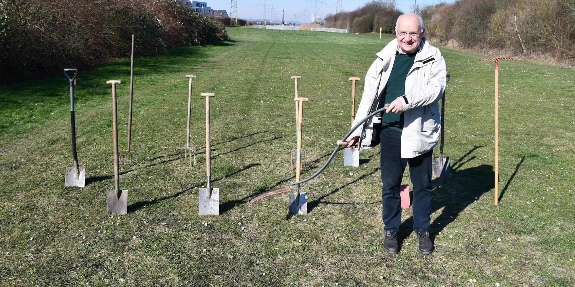 An die Spaten will Rolf Meier Familien mit Kindern, aber ohne eigenen Garten, im Bürgergarten bringen.