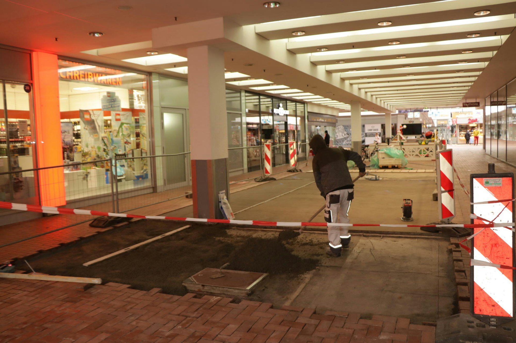 Auf einzelnen Flächen ist das alte rote Pflaster entfernt und durch neue weiße, graue und anthrazitfarbene Steine ersetzt worden. Auch die ersten großen mit Holz verkleideten Lampen, die zum Beispiel die Wege der Ladenstraße künftig erhellen und verschönern sollen, sind bereits montiert. Zusätzliche Lampen sollen im Boden verbaut werden. „Das wird schon sehr attraktiv aussehen“, ist Centermanager, Enver Savkay überzeugt. „Und wir liegen gut in der Zeit“, gibt er sich zuversichtlich.