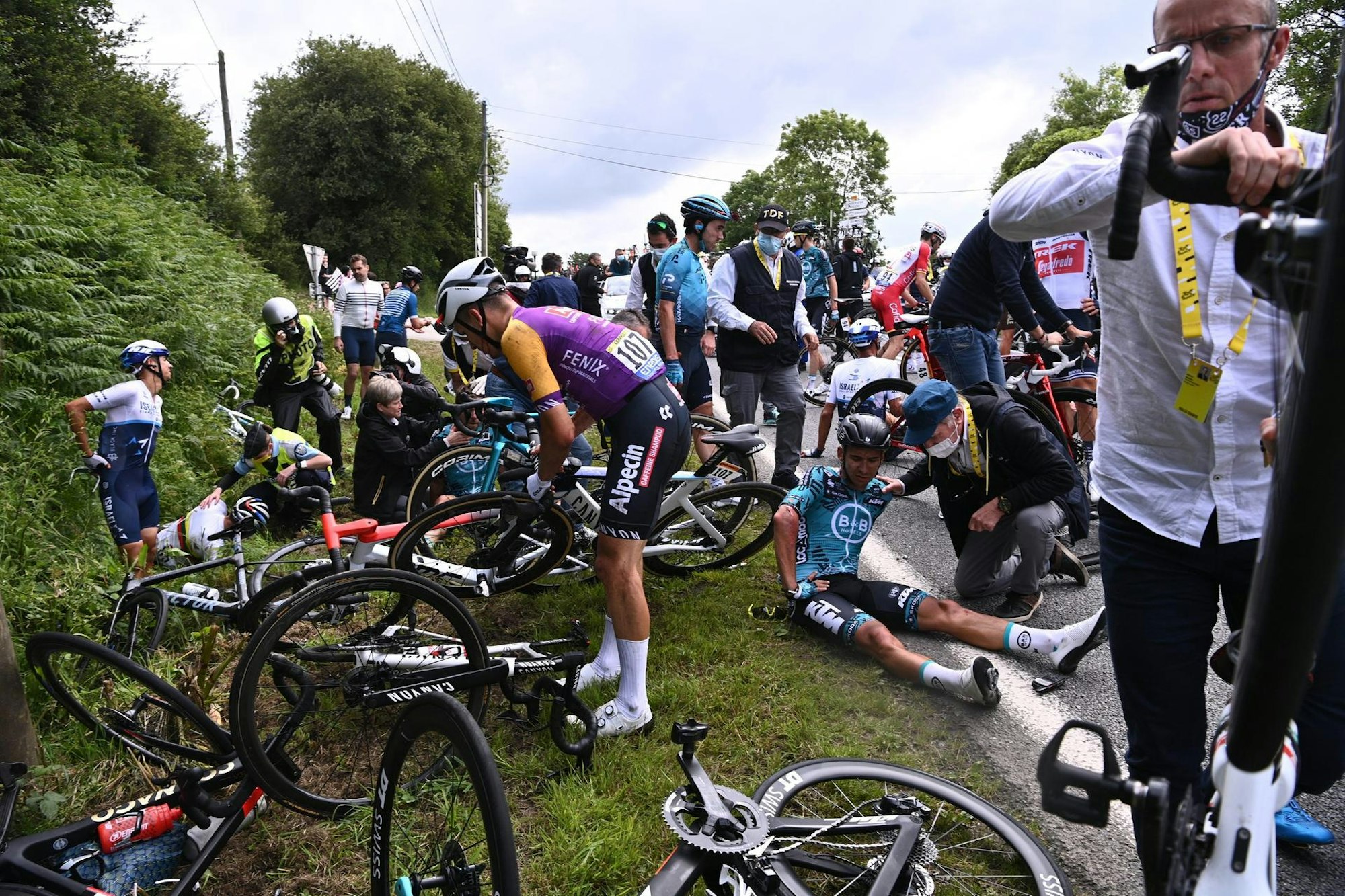 Stürze wie hier auf der ersten Etappe zwischen Brest und Landerneau sind bei der Tour de France keine Seltenheit.