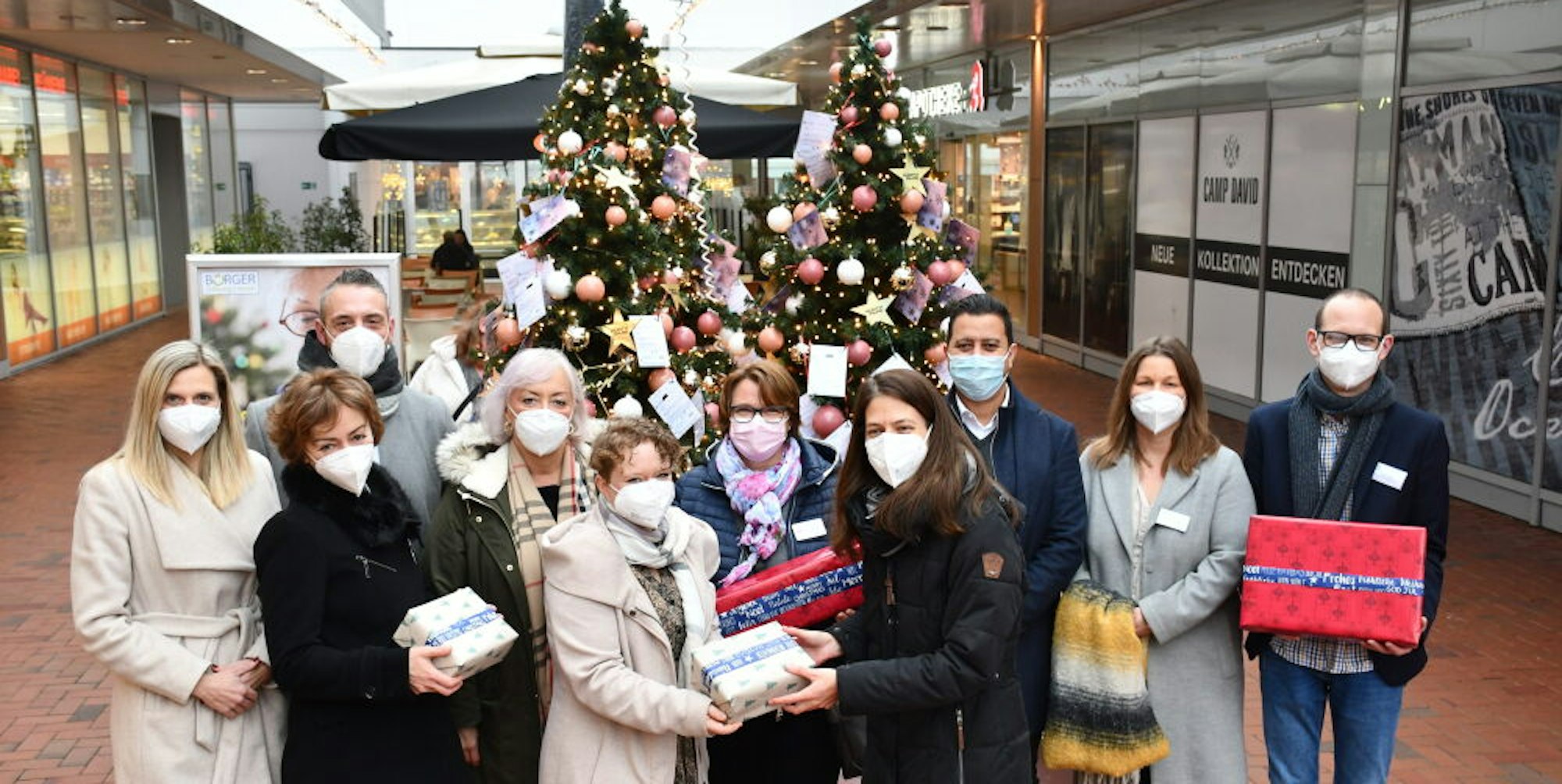 Auf die publikumswirksame Geschenkverpackungsaktion im Hürth-Park, bei der es oft prominente Unterstützung gegeben hatte, musste die Bürgerstiftung erneut verzichten. Stattdessen wurden die Präsente von den Mitarbeiterinnen und Mitarbeitern der jeweiligen Altenheimen selbst besorgt und verpackt. Im Hürther Einkaufszentrum, das die Wunschbaumaktion seit mehr als einem Jahrzehnt unterstützt, übergab Eva Fusshöller von der Bürgerstiftung nun symbolische Geschenkpakete an die Vertreter der Altenheime.