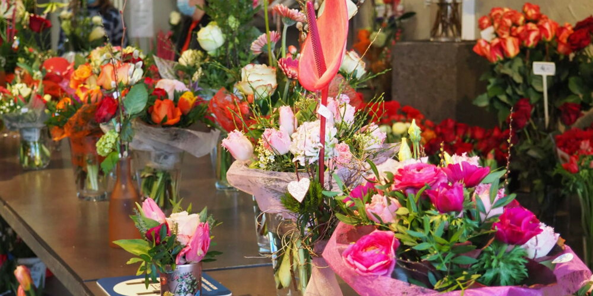Nach Einschätzung der Hürther Händlerin hat Corona die Nachfrage nach Blumen sogar noch befördert. „Die Leute müssen zu Hause bleiben, und dann wollen sie es sich wenigstens schön machen“, sagt Hubertine Fratini. „Wir können uns nicht beschweren“, bestätigt Monika Lehmann. Allerdings hätten die Blumenhändler übers Jahr erhebliche Einbußen hinnehmen müssen. Keine Hochzeiten oder großen Geburtstagsfeiern, auch Beerdigungen finden nur im kleineren Rahmen statt. Und auch das Geschäft zu Karneval ist ausgefallen. „Die Blumen-Deko für die Säle, die üppigen Sträuße zur Proklamation, das alles gibt es in diesem Jahr nicht“, bedauert Hubertine Fratini. Das wiegen auch die Rosenkavaliere am Valentinstag nicht auf.