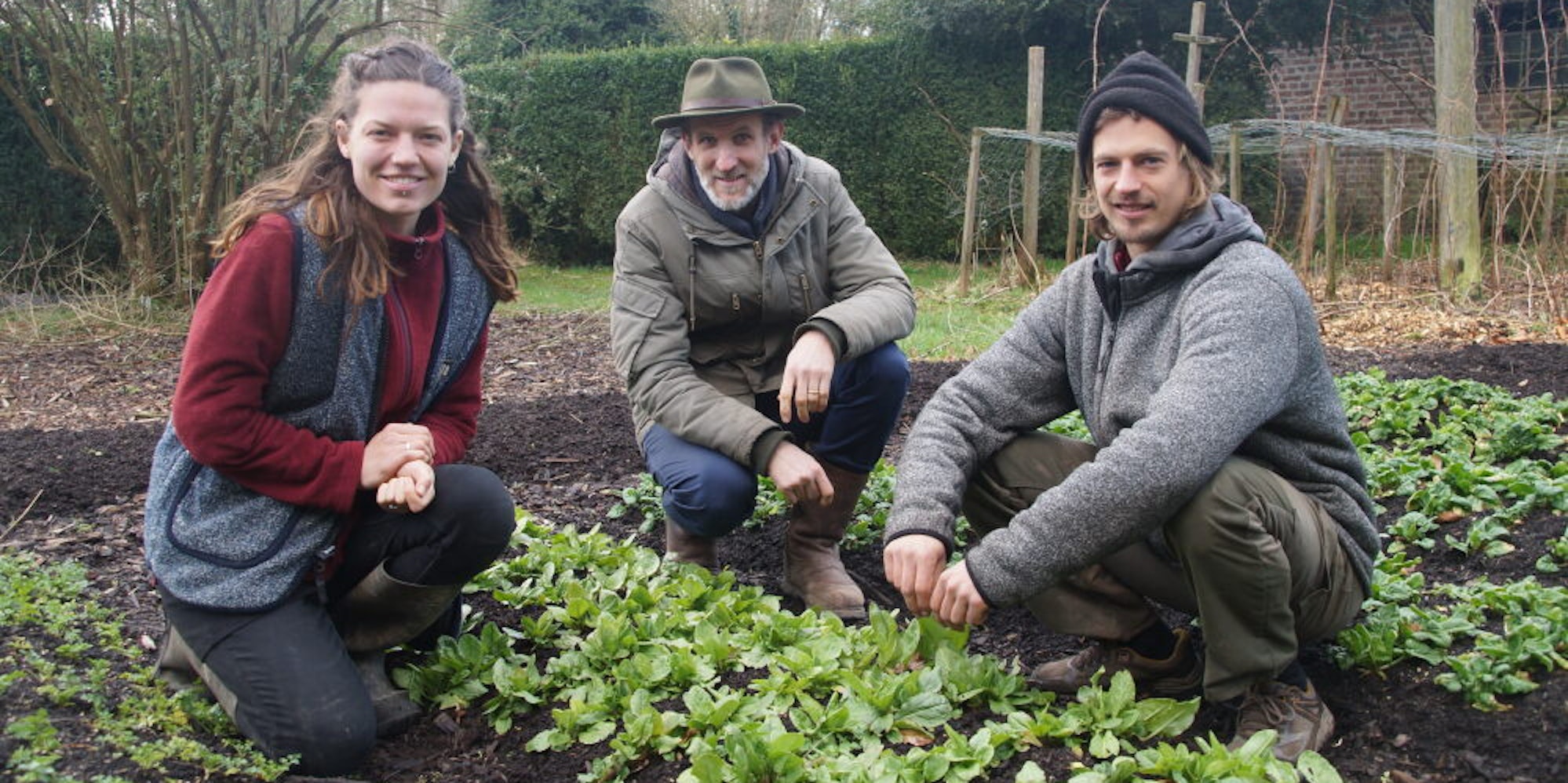 Der Sauerampfer wächst schon. Leonie Puhe (l.), Severin von Hoensbroech und Sam van Rijswijk freuen sich auf das Projekt.