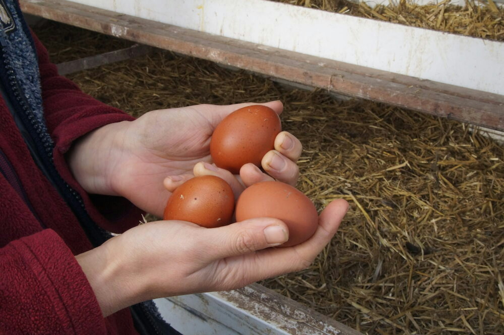 Auch Eier von den schlosseigenen Marans-Hühnern können zu der Gemüse-Box dazu bestellt werden.