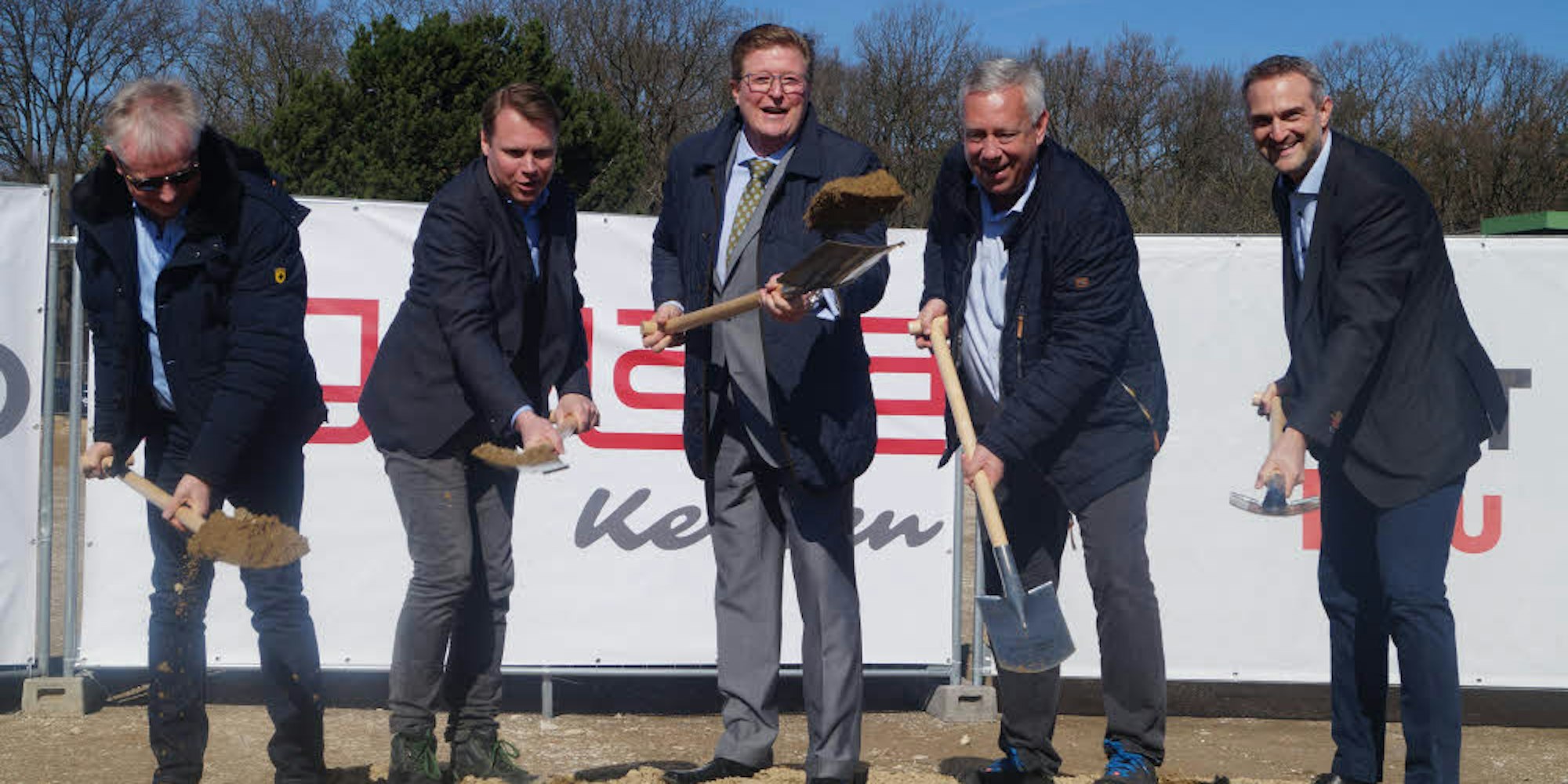 Kerpen – Vor einem Jahr wurde das alte Möbellager an der Boschstraße abgerissen – jetzt entsteht dort der fünfte Log Plaza. Die Stadt und das Unternehmen Alcaro Invest haben am Donnerstag den ersten Spatenstich für ein neues Logistikzentrum in der Boschstraße gefeiert.