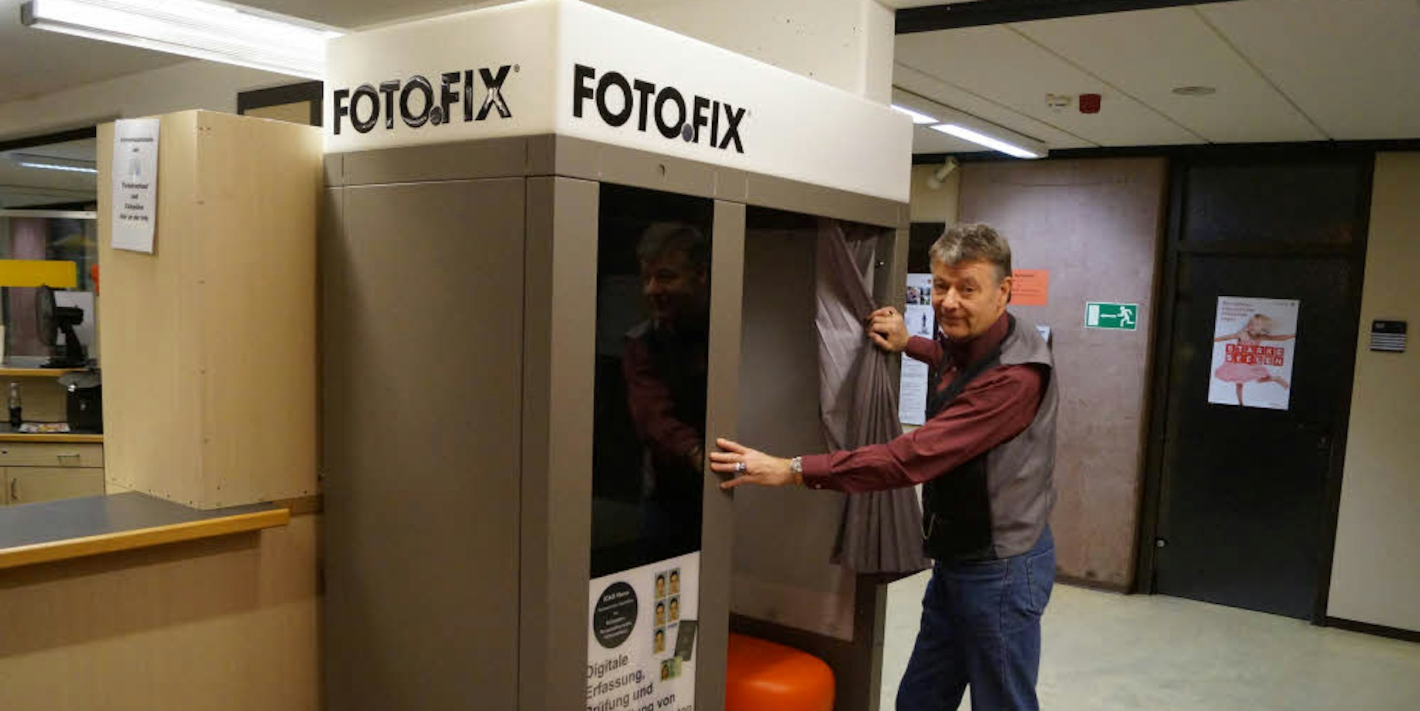 In diesem Fotofix-Automaten können nicht nur Passfotos gemacht werden. Er nimmt auch digital Fingerabdrücke und Unterschriften ab.