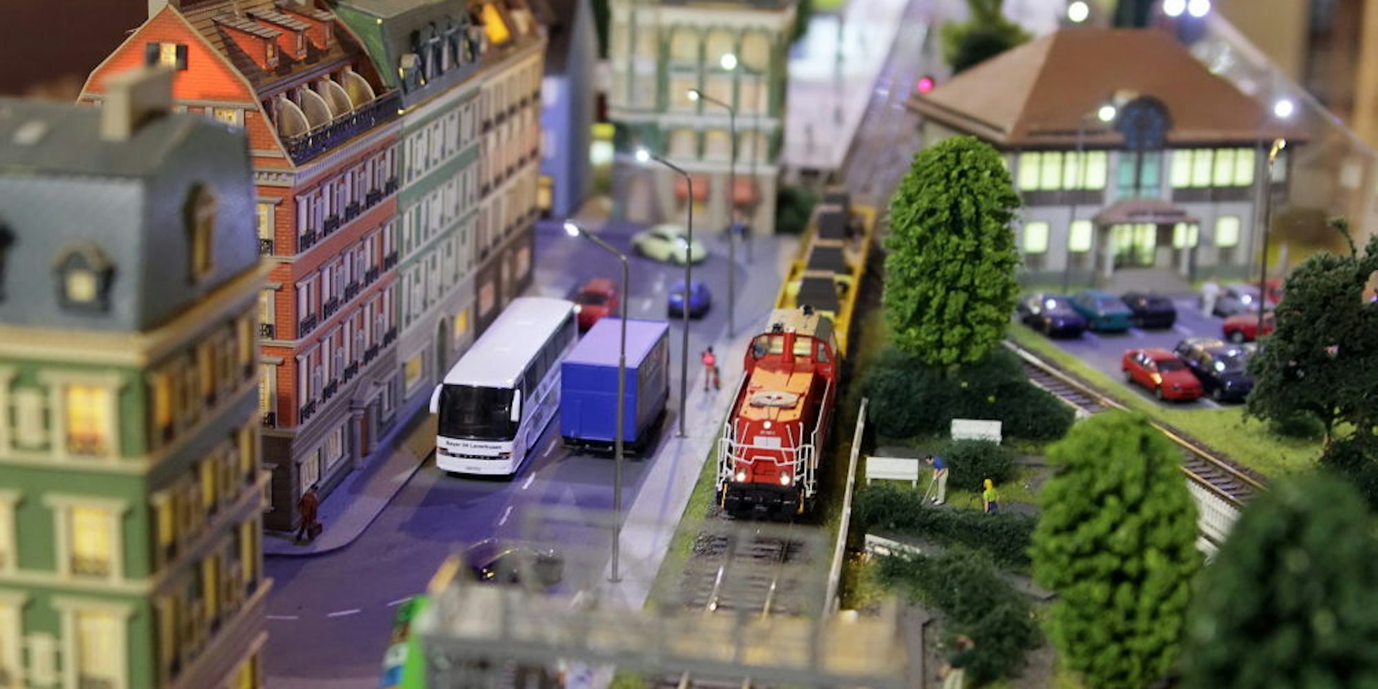 Hinzu kamen Anlagen von befreundeten Klubs aus Köln und Siegburg sowie aus Jülich. Der dortige Eisenbahn-Amateur-Klub hat eine Fantasielandschaft aufgebaut. Die besticht durch eine ausgeprägte Liebe zum kleinsten Detail. Sogar das Blaulicht eines Polizeiautos kann elektrisch zum Blinken gebracht werden.