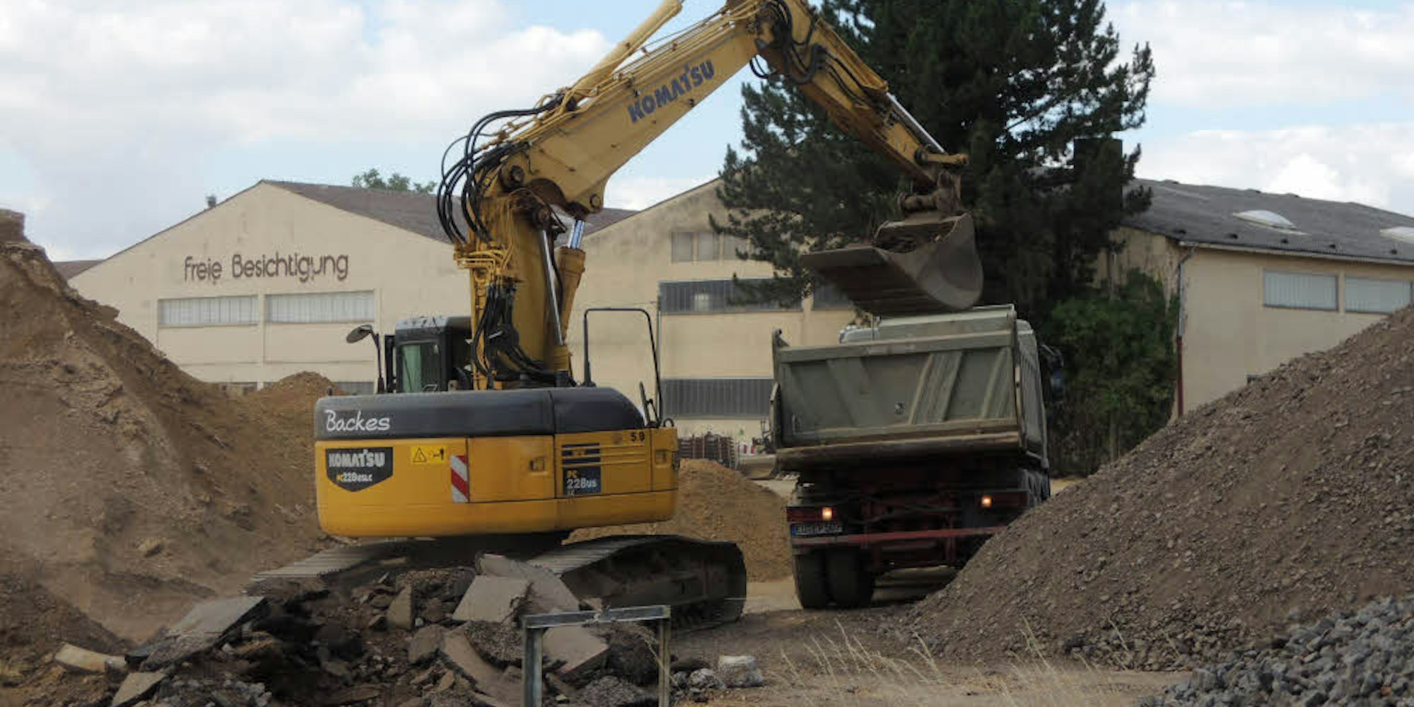 Am Vinger Weg haben die Bagger begonnen, altes Oberflächenmaterial für das neue Wohnviertel für 48 Häuser abzubaggern.