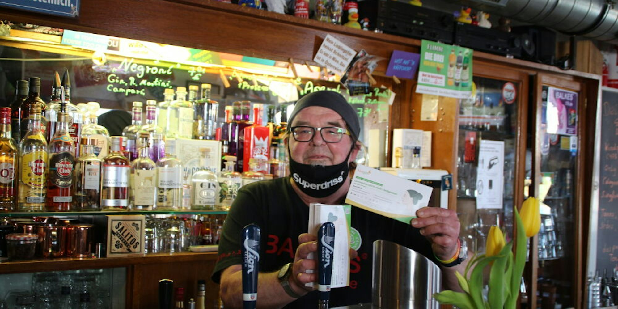 Andreas Weyrauch will seine Gäste der Gaststätte „wunderbaR – konsum“ in Kerpen vor Eintritt eigenständig auf Corona testen.