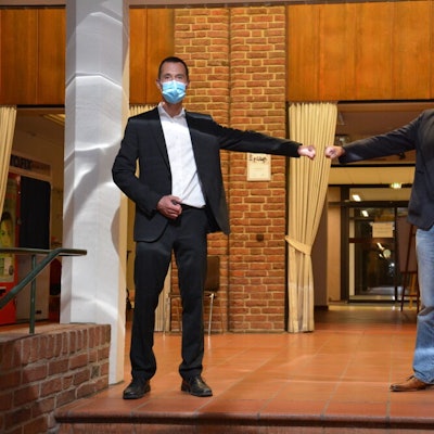 SPD-Herausforderer Andreas Lipp (l.) gratuliert am Sonntagabend dem alten und neuen Bürgermeister von Kerpen, Dieter Spürck.