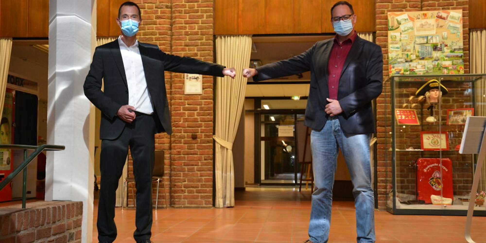 Als fairer Verlierer gratulierte SPD-Herausforderer Andreas Lipp (r.) dem wiedergewählten Bürgermeister Dieter Spürck (CDU).