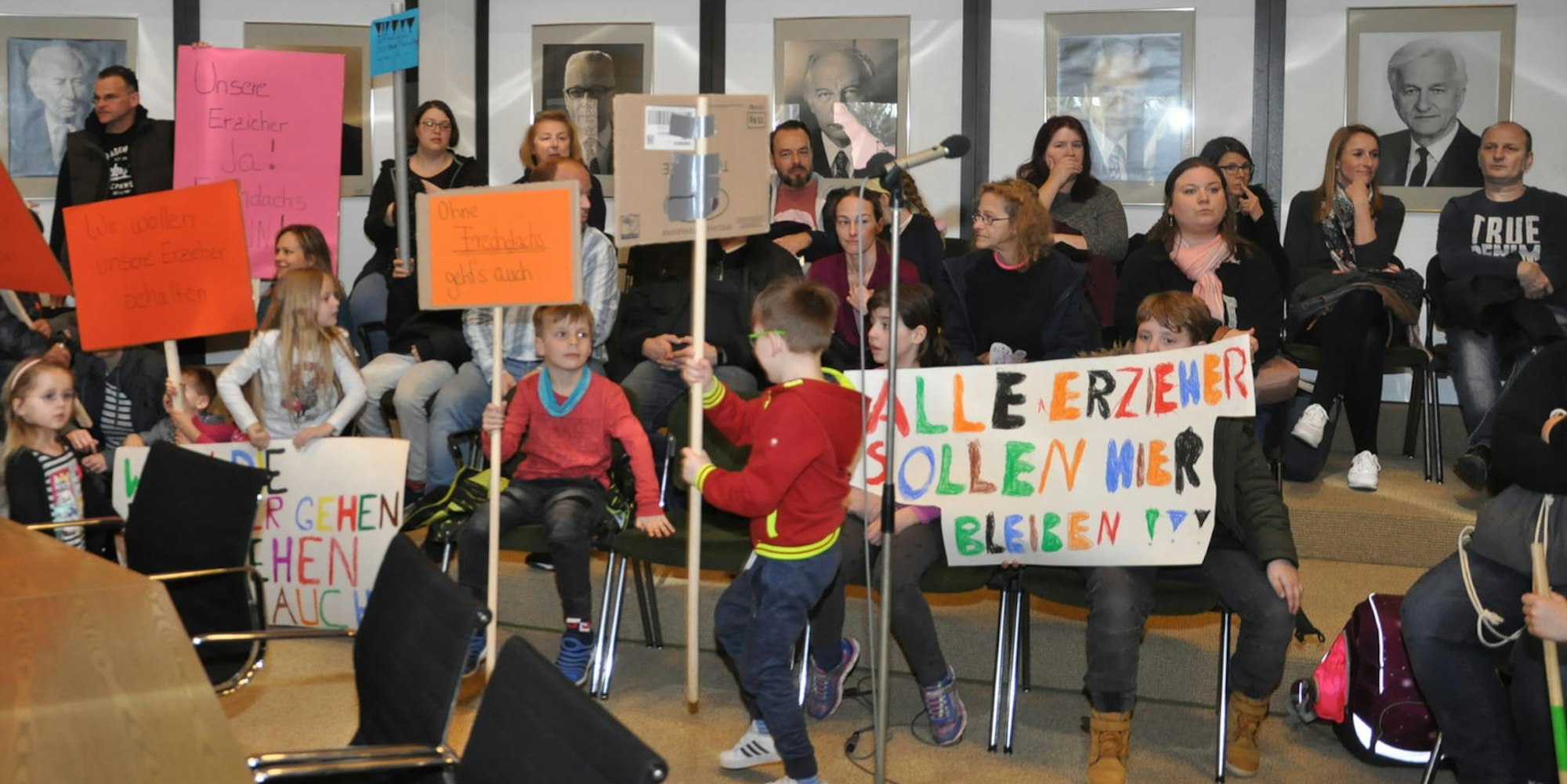 Weitere Beratungen zu dem Thema fanden im nichtöffentlichen Teil der Sitzung statt, nachdem Eltern und Kinder mit ihren selbst gemachten Transparenten und Plakaten den Ratssaal wieder verlassen hatten.