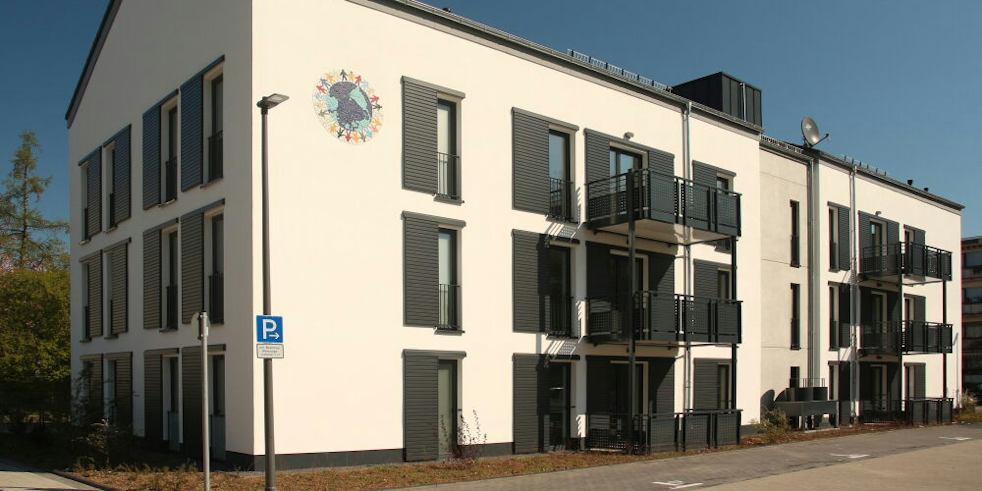 Die Zwei- und Dreizimmerwohnungen mit Flächen zwischen 61 und 76 Quadratmetern im dreigeschossigen Haus verfügen über Balkon oder Terrasse. Das Gebäude ist mit einem Aufzug ausgestattet. Die Wohnungen besitzen Fußbodenheizungen, die mit einer umweltschonenden Wärmepumpe betrieben werden. Bodentiefe Fenster sorgen für viel Tageslicht. Ein Grünstreifen rings herum gibt dem Haus einen grünen Rahmen und lockert das Gesamtbild auf.