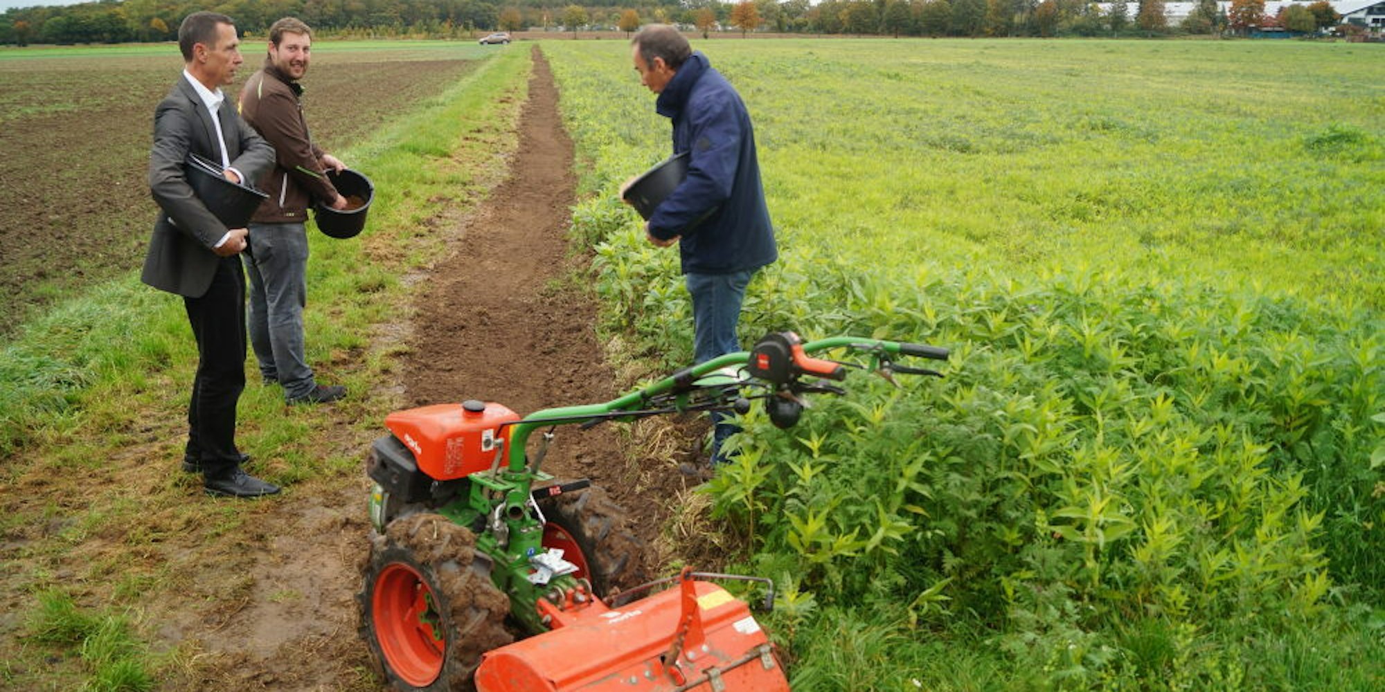 Die Bauern Gerd und Alexander Moll machen schon mit. Sie bearbeiten die Äcker neben den Feldwegen hinter dem Fachmarktzentrum und hoffen, dass bei der Aussaat nun auch „was Gutes“ rauskommt.