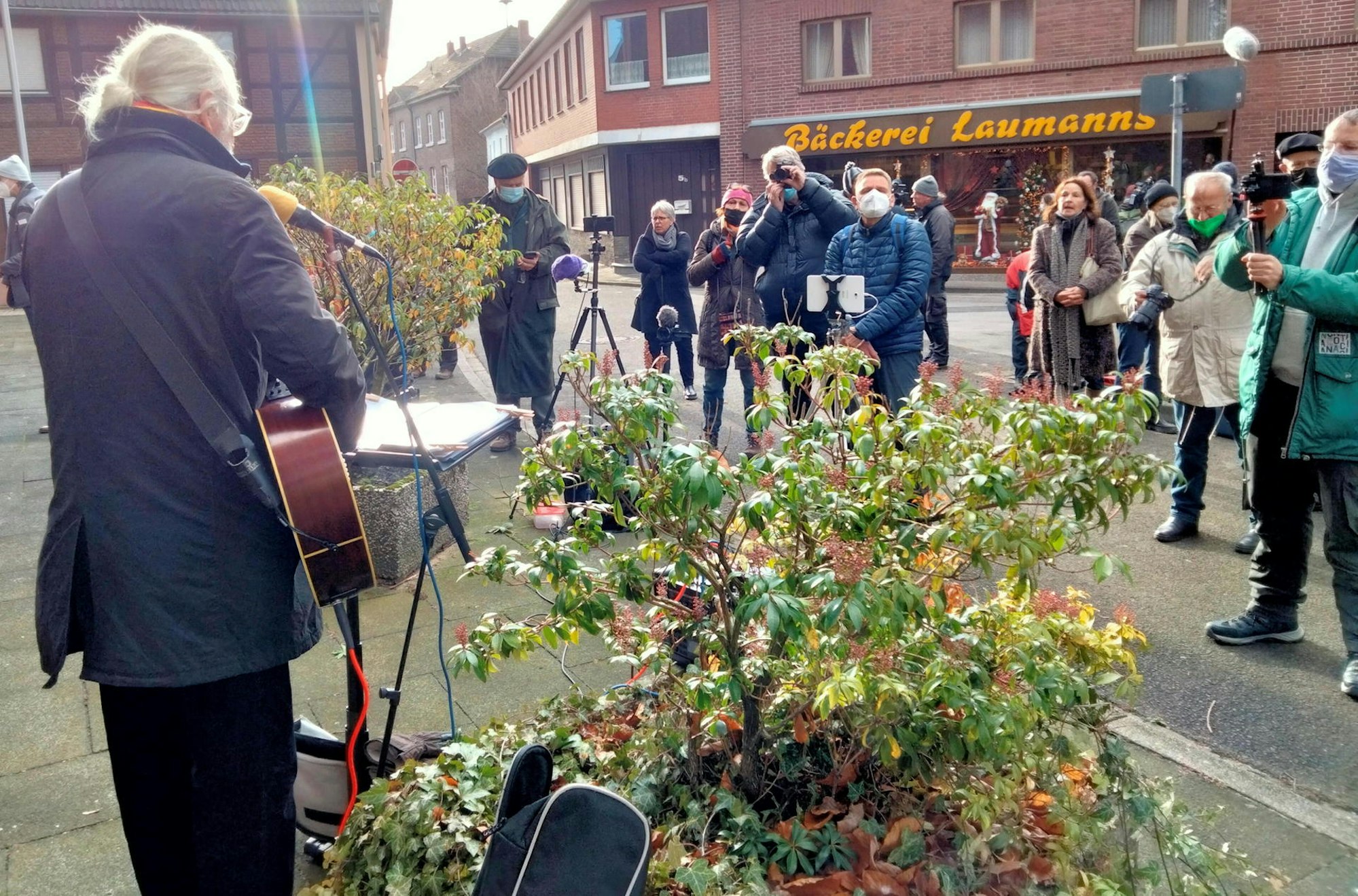 Einige der Demonstranten sangen draußen mit Liedermacher Gerd Schinkel.