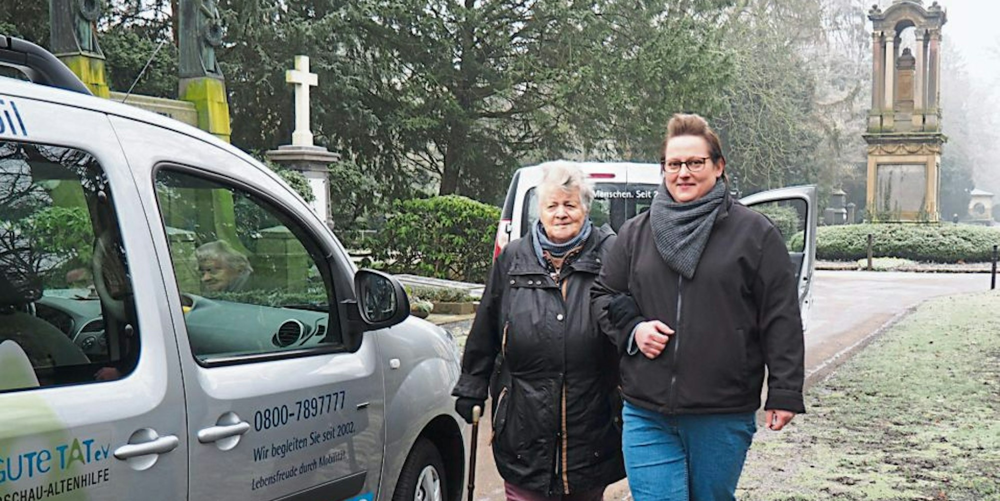 Seit Oktober ist Josephine Dau (r.) als Fahrerin für den Verein Senioren-Servicedienste Köln im Einsatz. Sie begleitet Senioren zu den Gräbern ihrer Angehörigen.