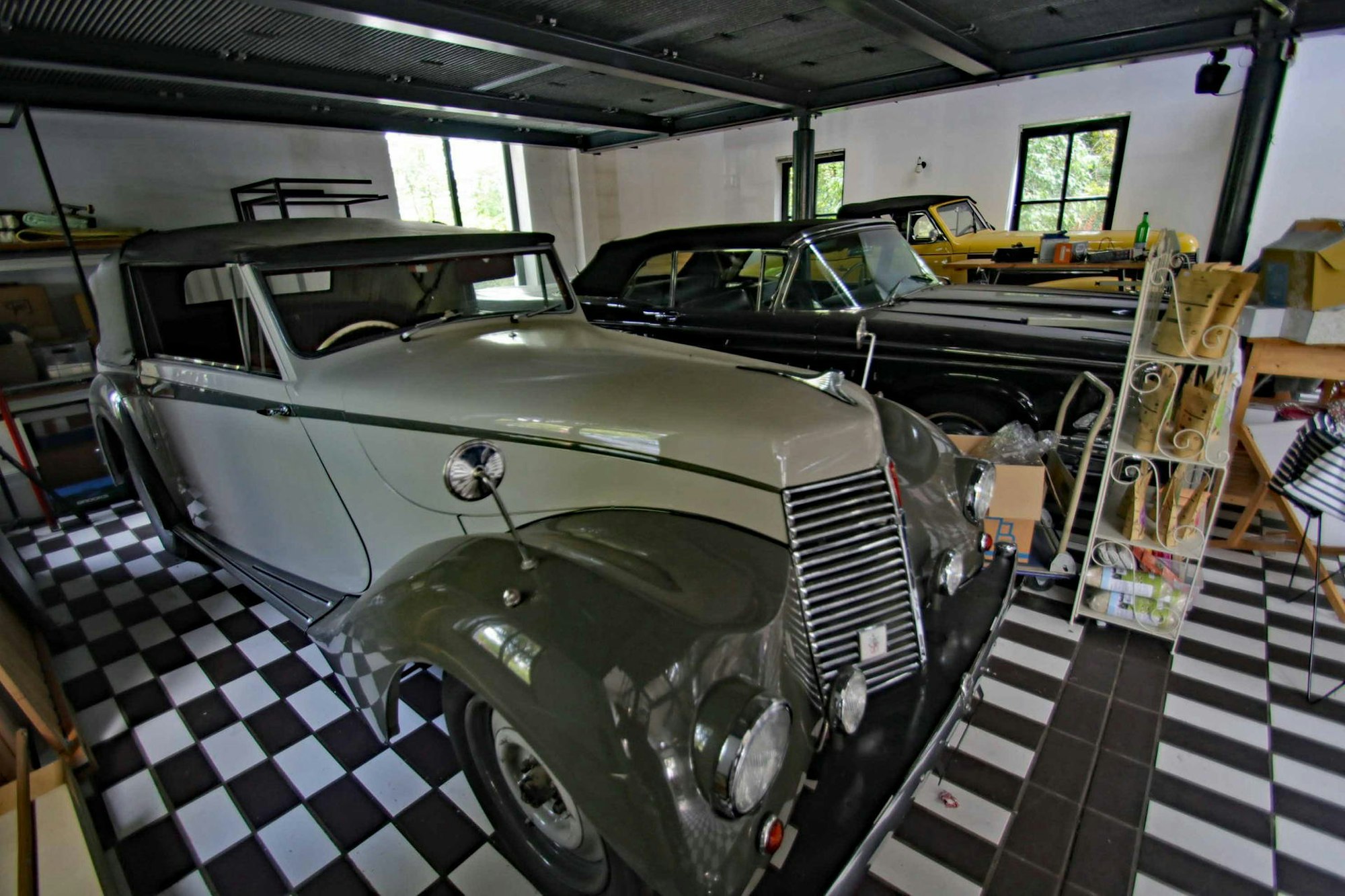 Die Oldtimersammlung wird aufgelöst und steht wie der Armstrong-Siddeley im Vordergrund zum Verkauf.