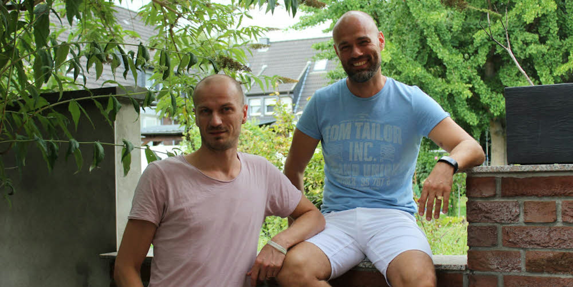 Frechen – Eigentlich sind Lucas und Martijn Theisen Großstadtmenschen. „Aber mit drei Hunden und einer Katze in Köln eine Wohnung zu finden, ist ein Ding der Unmöglichkeit“, sagt Lucas Theisen. Also sind der 36-jährige Tänzer und Choreograph und sein Partner, der zwei Jahre ältere, niederländische Moderator und Eventmanager Martijn Theisen, in Bachem gelandet – eine Entscheidung, die sie nicht bereut haben, zumal seit zwei Jahren auch ein vierjähriger Pflegesohn zur Familie gehört.