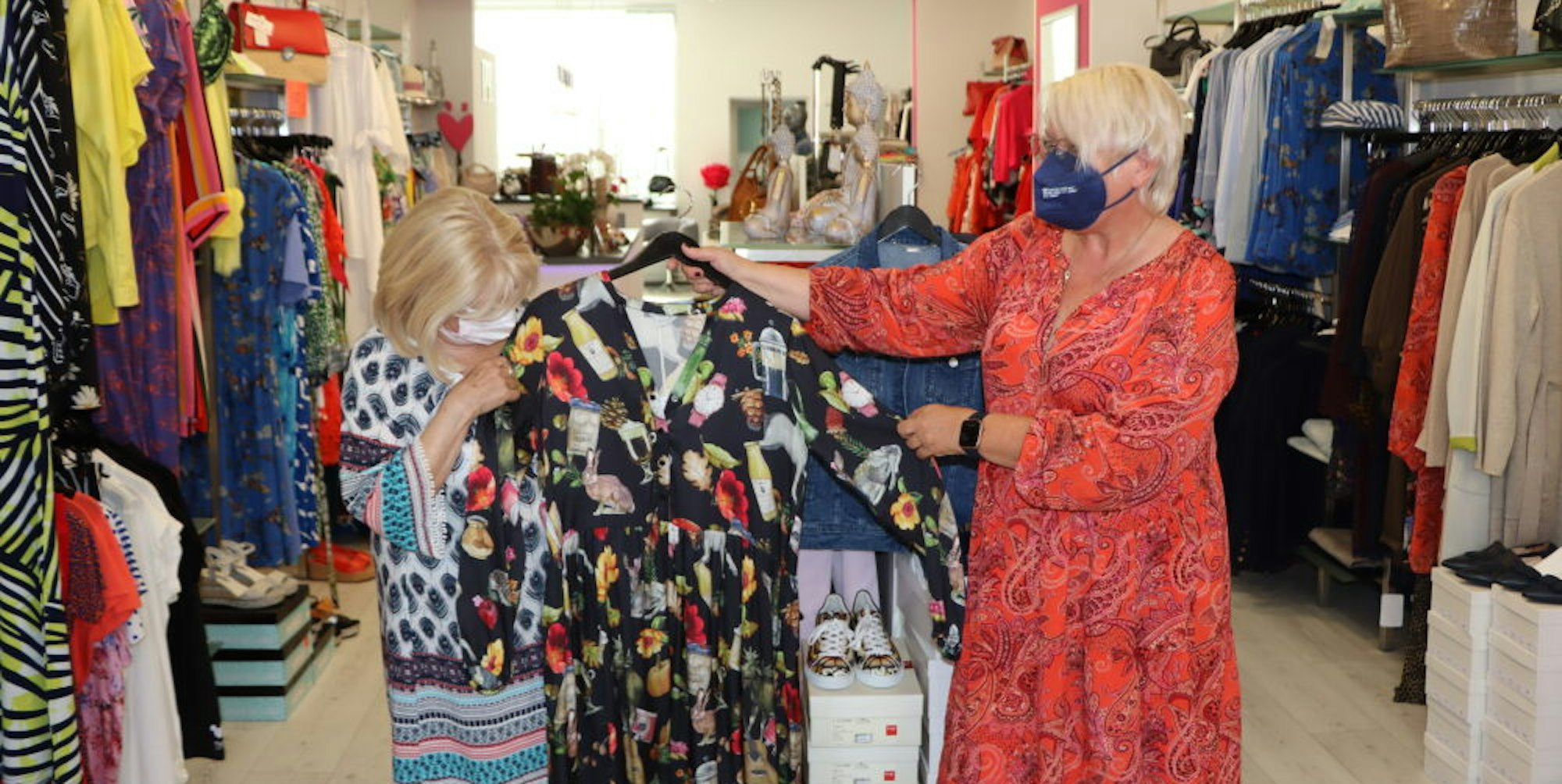 Die Abstandsregelung und die Maskenpflicht für sie und ihre Kundinnen sind für Geschäftsfrau Petra Preis (r.) aus Lechenich kein Problem.
