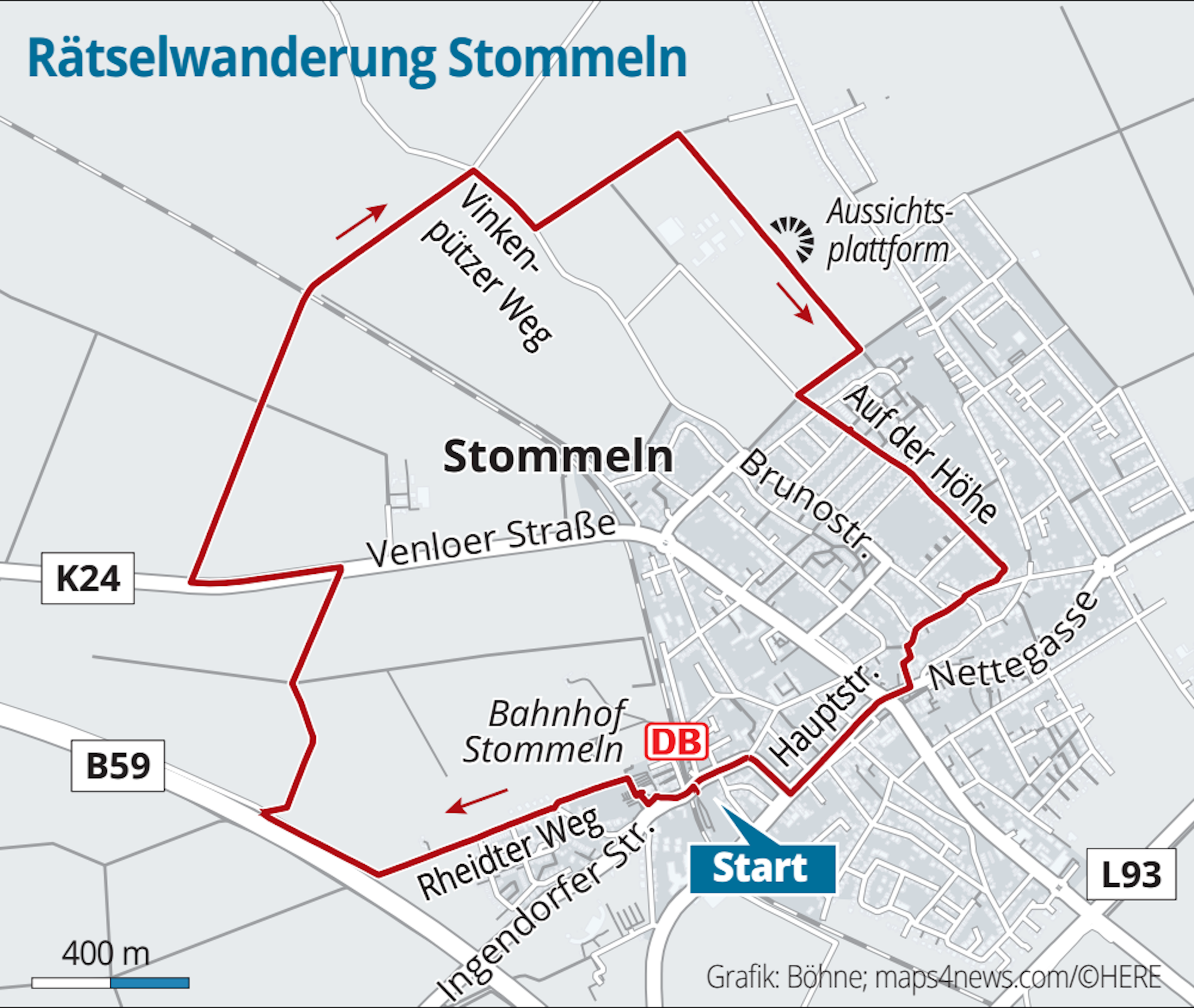 Die Route der Rätselwanderung in Stommeln