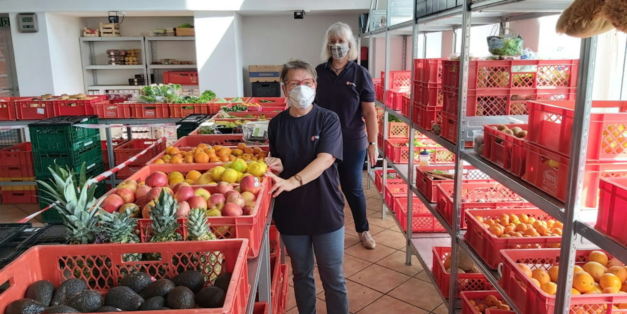 „Maximal drei Kunden dürfen sich gleichzeitig in der Lebensmittelausgabe aufhalten. Sie bekommen von uns, was sie brauchen. Unsere Mädels legen die Ware in Gitterkörbe, die Kunden nehmen sie mit und packen die Ware im Eingangsbereich, wo wir Tische aufgestellt haben, ein.“ Mundschutze und Handschuhe für die Teams in der Lebensmittelausgabe seien ein Muss. „Inzwischen tragen auch die meisten Kunden einen Mundschutz.