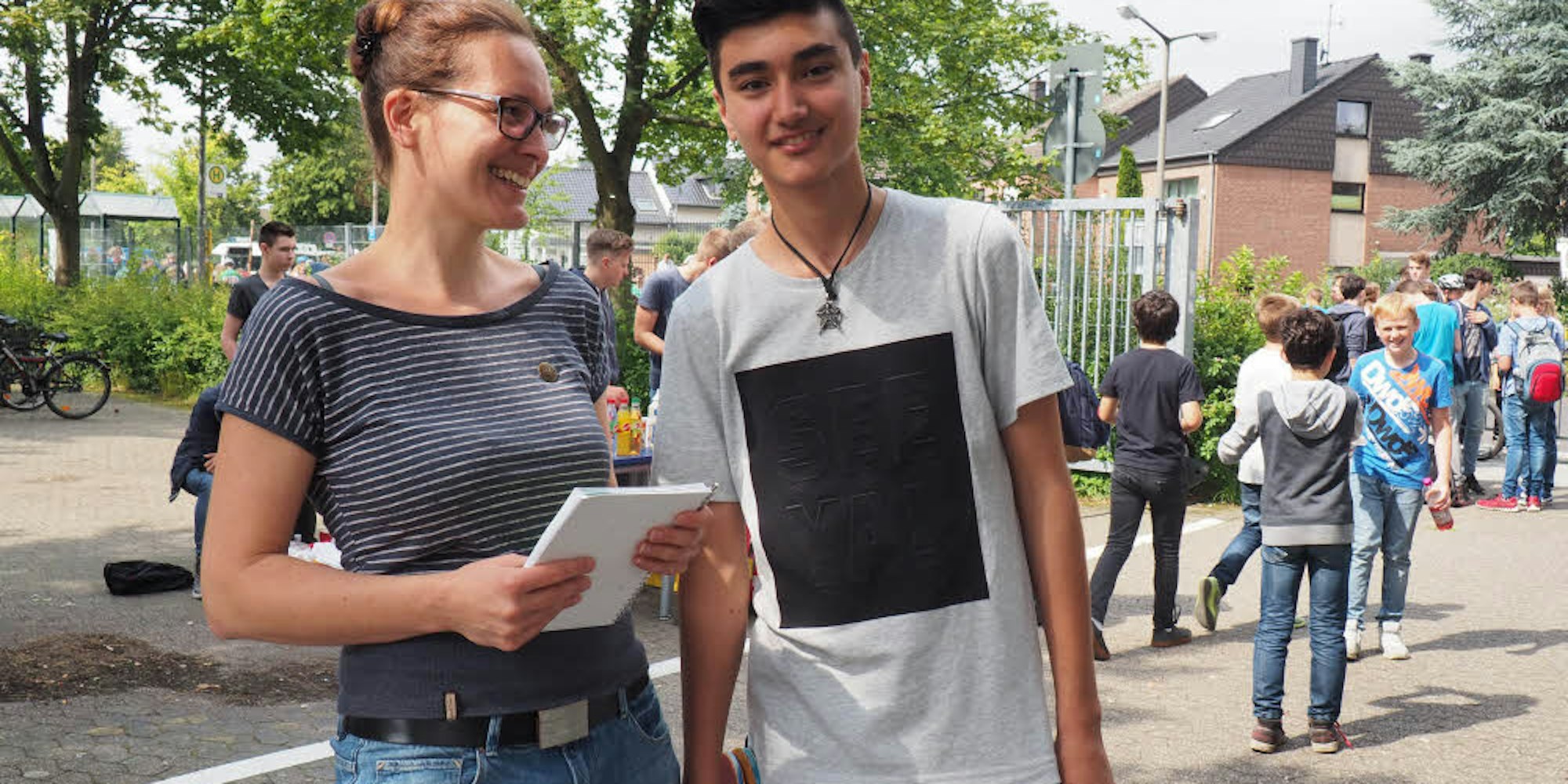 Ramon Hesso (im Bild mit Nicole Krasemann) ist mit seinen Eltern aus der syrischen Stadt Aleppo nach Deutschland geflohen. Seit vier Monaten lebt er in Pulheim und fühlt sich dort sehr wohl.