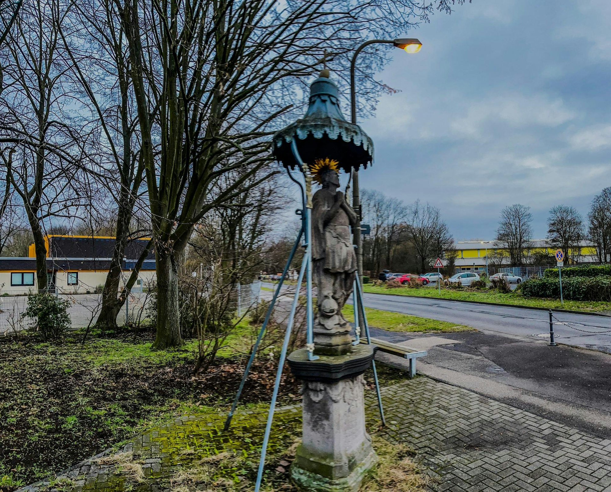 „Einige sagen, dass man es verrücken kann. Wir sind nicht dafür, es wie ein Möbelstück zu verrücken. Es steht dort seit 1779“, meint Ulrich Stevens. Die Figur des Heiligen in der Brauweiler Feldflur sei so platziert, dass sie am Wegesrand zwischen dem Kloster und dem großen landwirtschaftlichen Hofverbund des Klosters um Freimersdorf gelegen habe. Das seien alte Wegebeziehungen, beispielsweise alte Prozessionswege, die heute noch erhalten seien. „Jeder konnte im Vorbeikommen ein Vaterunser beten und den Schutz dieses für die Ernte so wichtigen Heiligen erflehen.“