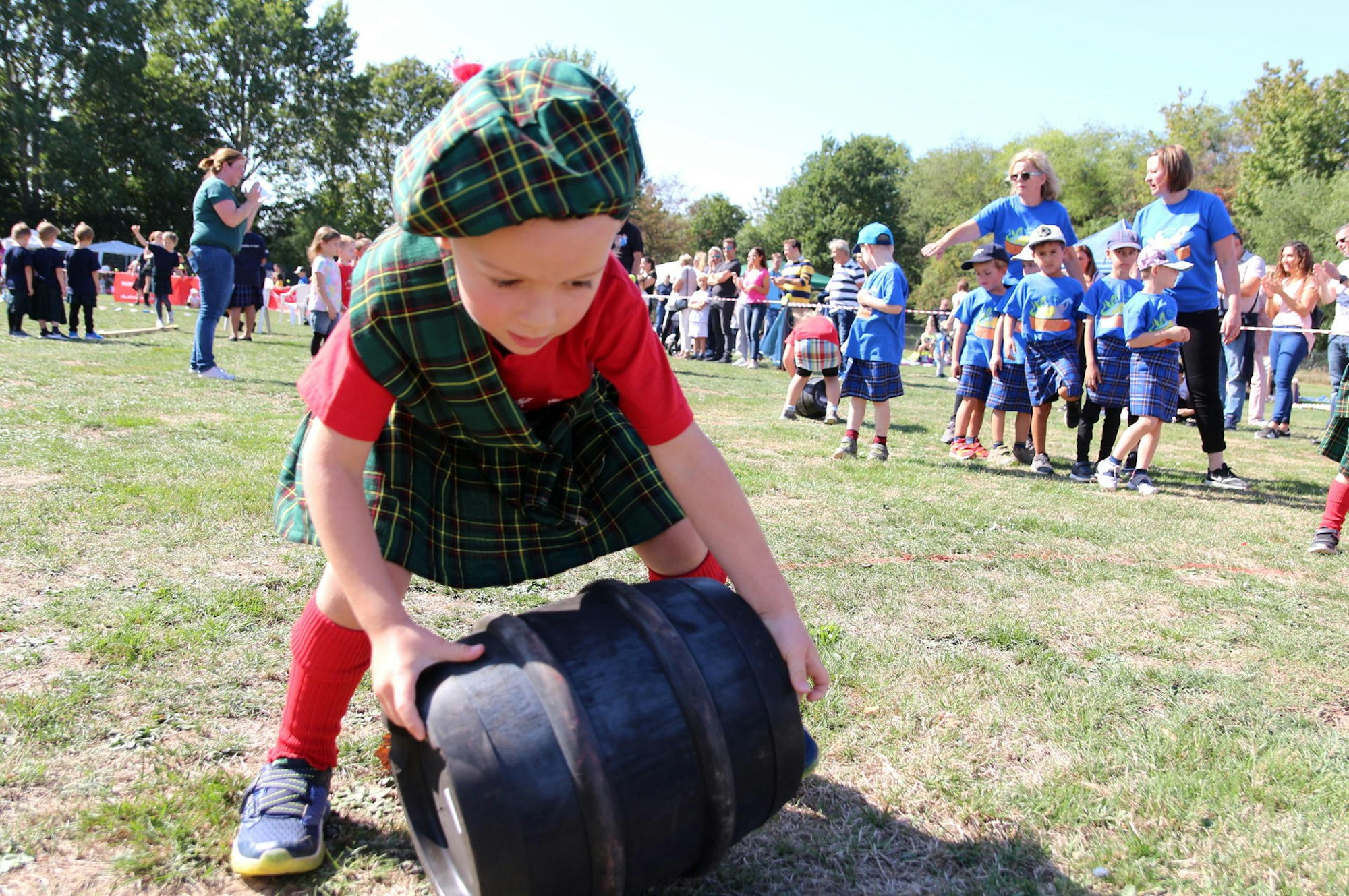 Highland Games in PulheimKita-Kinder kämpfen mit Kilt und Bonnet