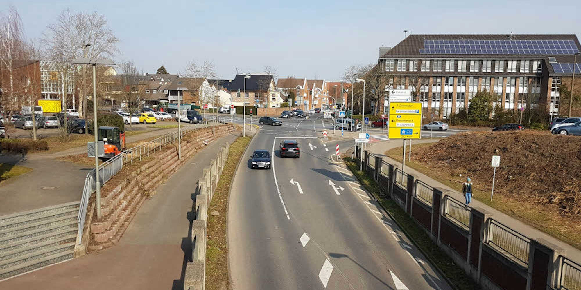 „Von der Einmündung Orrer Straße in die Bonnstraße wird der Verkehr zum Schul- und Sportzentrum durch die Albrecht-Dürer-Straße geleitet. Die kleine Unterführung Am Kleekamp wird gesperrt.“