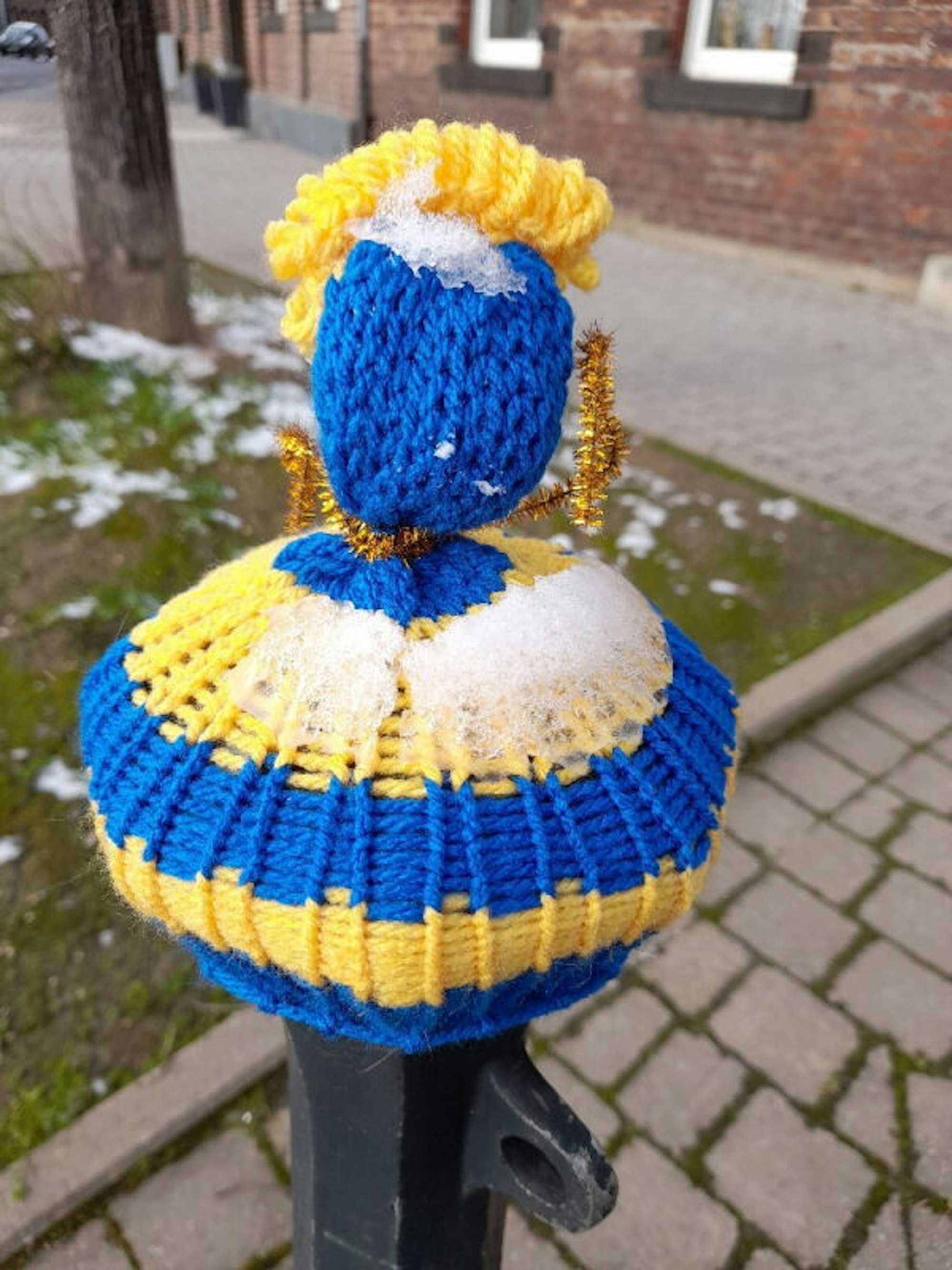 Pulheim-Stommeln – Sie sind bunt, mal blau-gelb, mal rot-weiß, gern auch grün-weiß. Sie sind an den unterschiedlichsten Stellen im Mühlenort zu finden, vor Geschäften, Kneipen, an Verkehrsinseln und Absperrungen, an der Hauptstraße, aber auch an Seitenstraßen. Doch wer die gestrickten Mützen meist zu nachtschlafender Zeit im Ort platziert, ist und bleibt ein Rätsel.