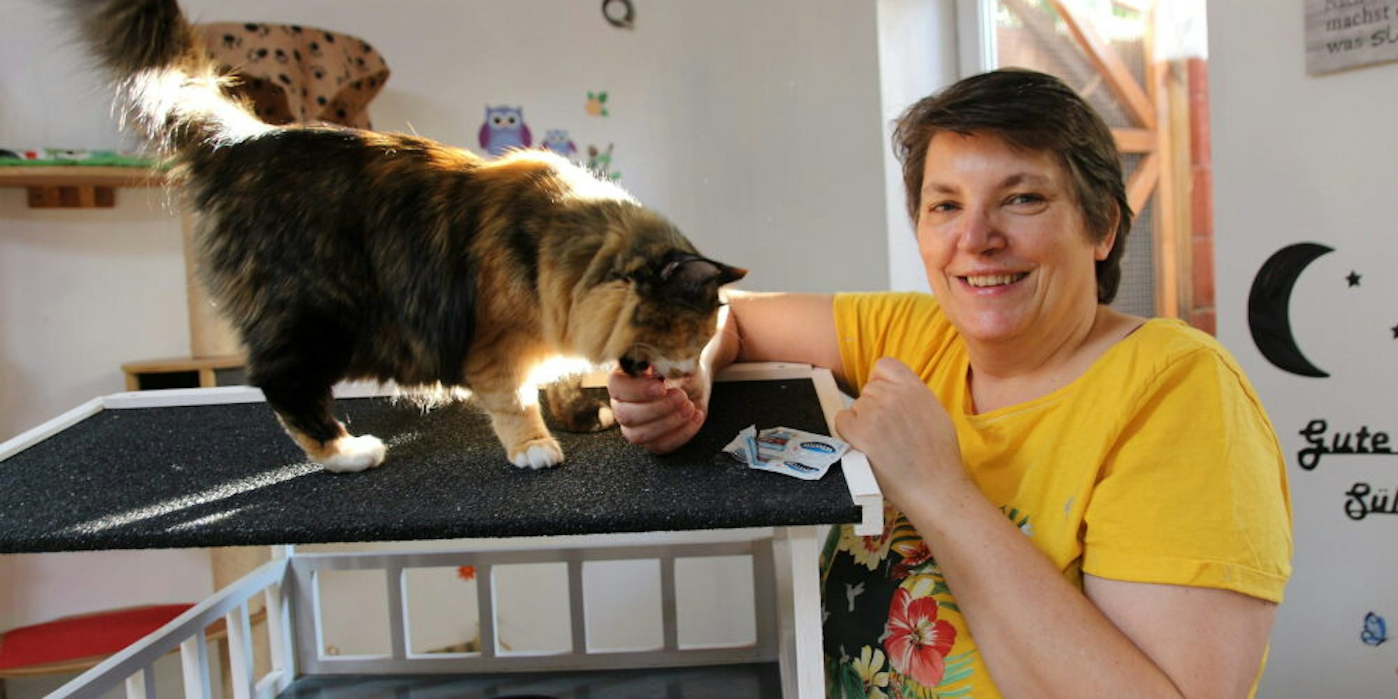 Katzenliebhaberin Carmen Hoffmann – hier mit Wirbelwind Mila – hat vor vier Jahren ihr Hobby zum Beruf gemacht.