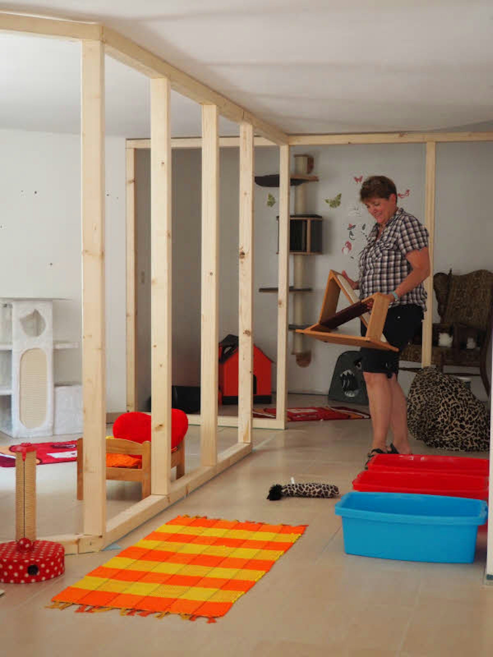 Etwas arbeitsintensiver dürfte die Fertigstellung des Außengehege im Garten sein. „Es wird überdacht und mit Kratzbäumen und verschiedenen Klettermöglichkeiten ausgestattet. Es soll so schnell wie möglich fertig sein.“ Und es soll „möglichst abwechslungsreich gestaltet werden“, wie der Innenraum auch, der die Tiere zum Klettern und Spielen einladen soll.