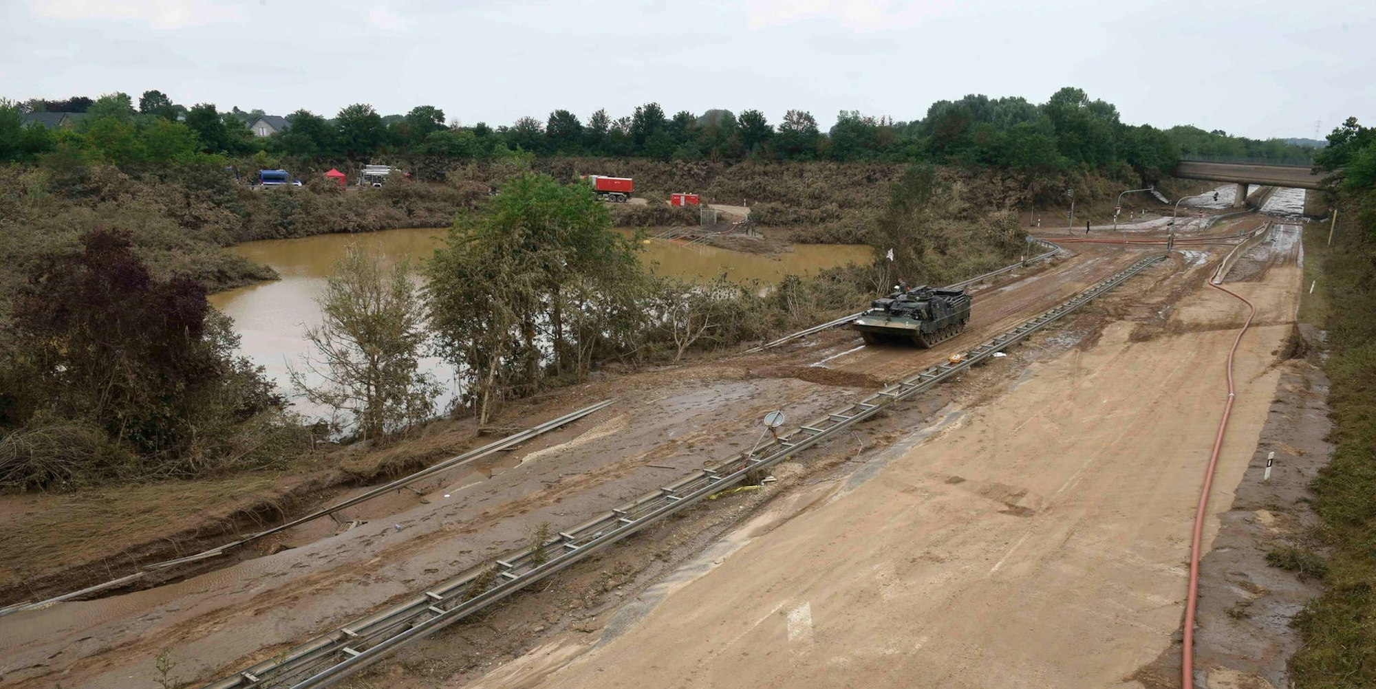 Wann die Bundesstraße 265 bei Erftstadt-Blessem wieder befahrbar sein wird, ist unklar.