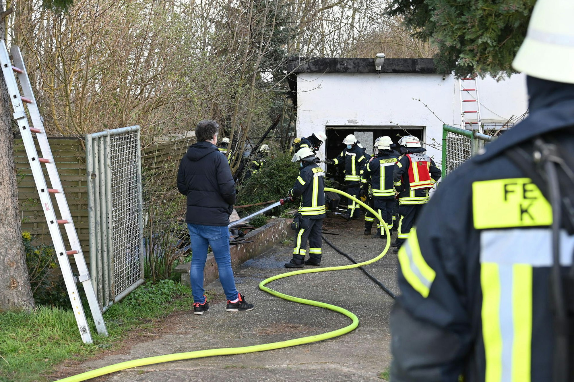 Ein Schuppen gleich neben einem Wohnhaus geriet am Samstagnachmittag in Kerpen in Brand.