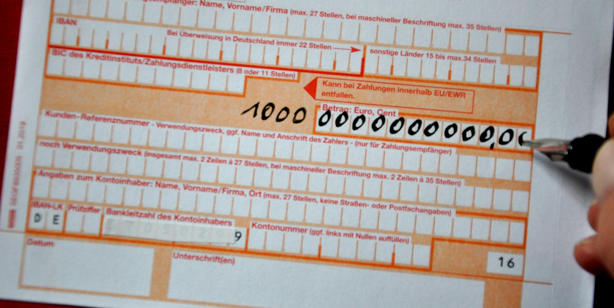 Zehn Billionen Euro sprengen die Kapazität eines Überweisungsträgers und auch der Nürnberger Bundesagentur für Arbeit.
