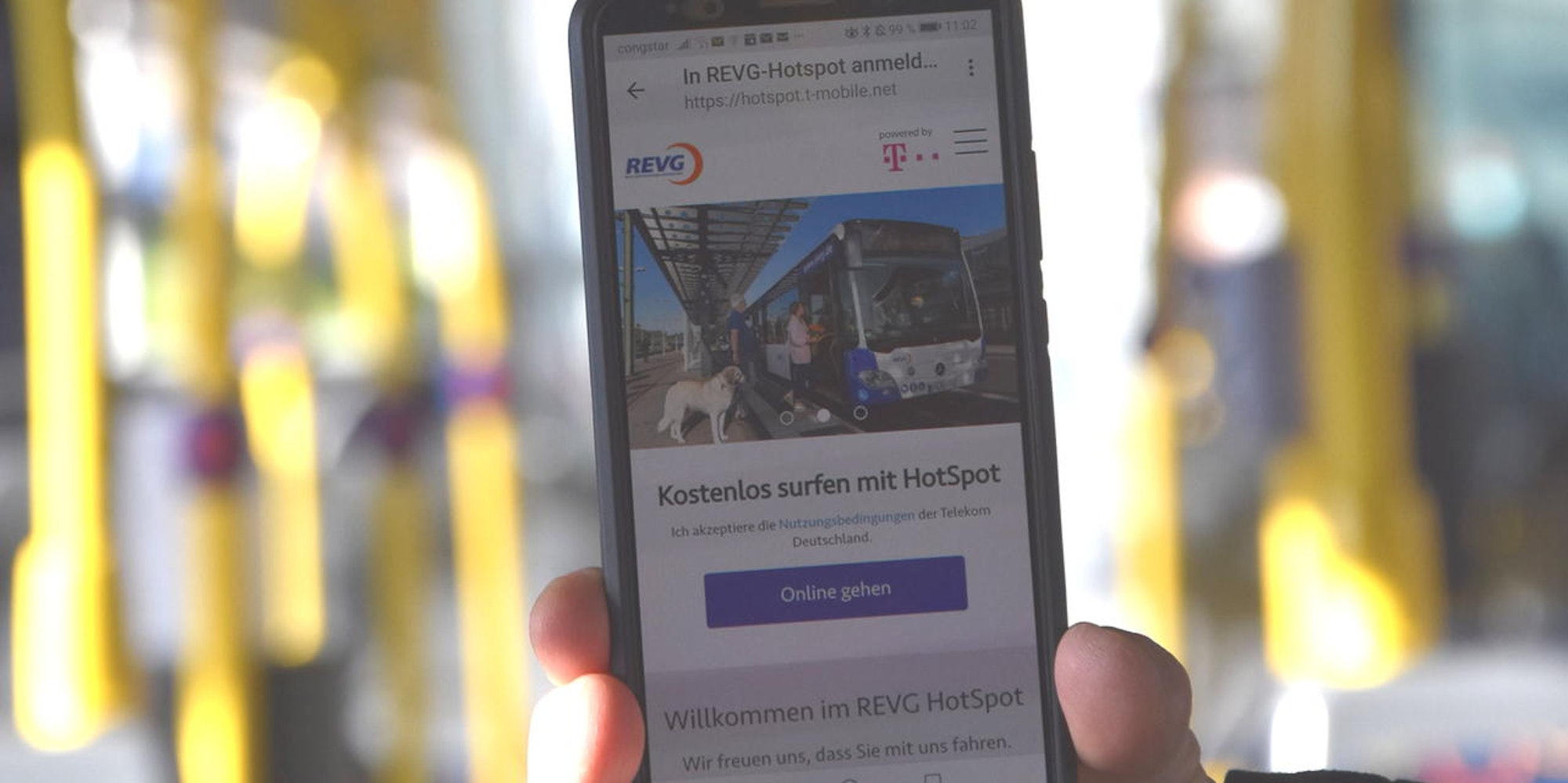 Die Busse werden an den Türen mit Aufklebern gekennzeichnet, die „HotSpot on Tour“ verheißen. Wer einen Fahrschein besitzt, kann sich mit wenigen Klicks mit seinem Smartphone oder Tablet über den Router „REVG HotSpot“ einwählen und bleibt auch beim Umsteigen innerhalb von 24 Stunden verbunden. Personengebundene Daten werden laut REVG nicht gespeichert.
