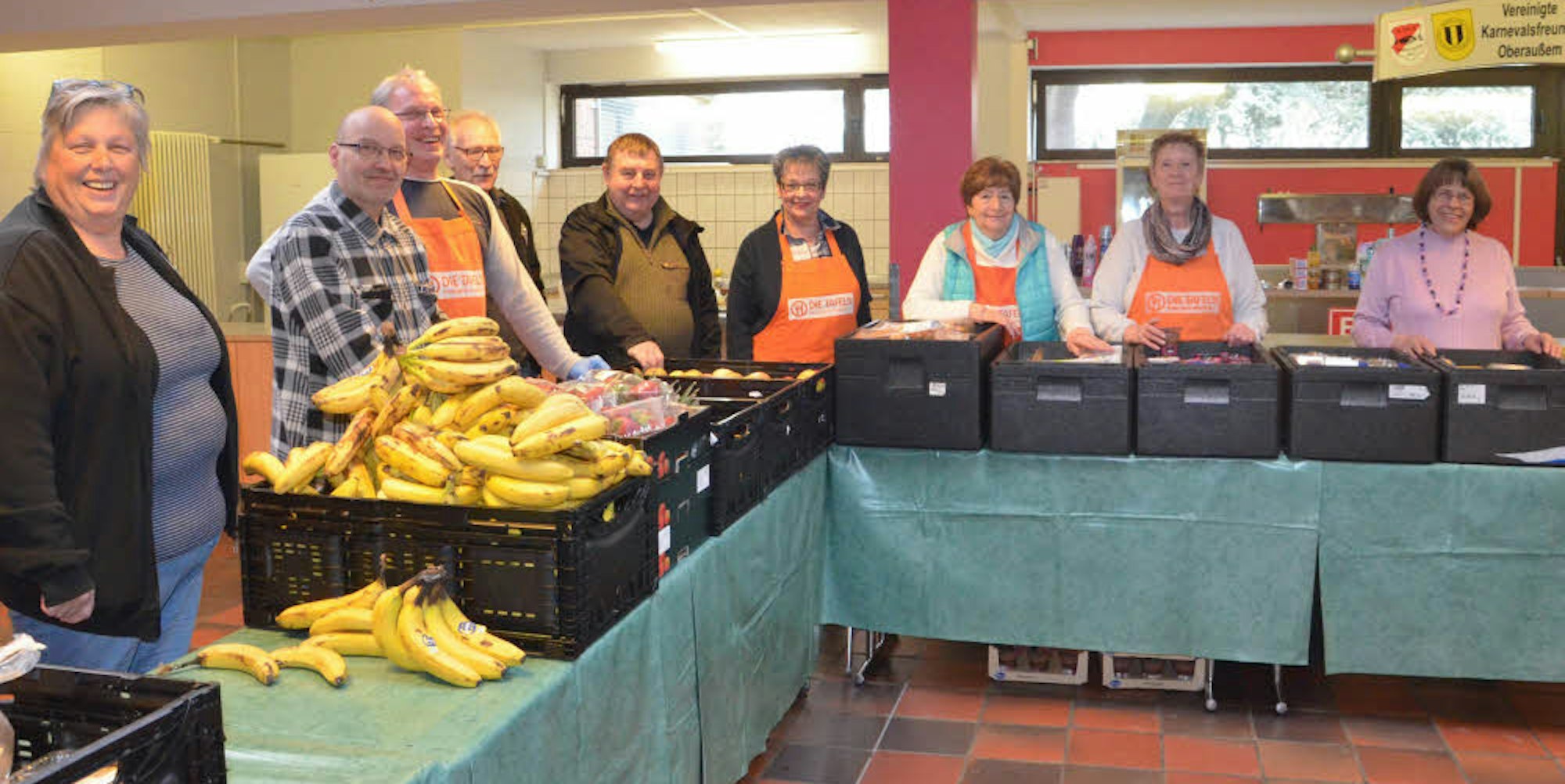 Bei einem Besuch der Ausgabestelle in Oberaußem zeigen sich die Kunden sehr diszipliniert. Nummern werden an die Wartenden vergeben, dann werden sie in kleinen Gruppen vorgelassen, sie entrichten ihren Ein-Euro-Beitrag und gehen zur Warenausgabe: Brot, Obst, Gemüse, eingeschweißte Wurstwaren, Molkereiprodukte, Süßigkeiten, auch Hygieneartikel. Das Angebot ist reichlich. Es sei nicht immer gleich, klärt Teamleiterin Christiane Ebert auf. Es komme eben immer darauf an, was die Supermärkte gerade abgeben.