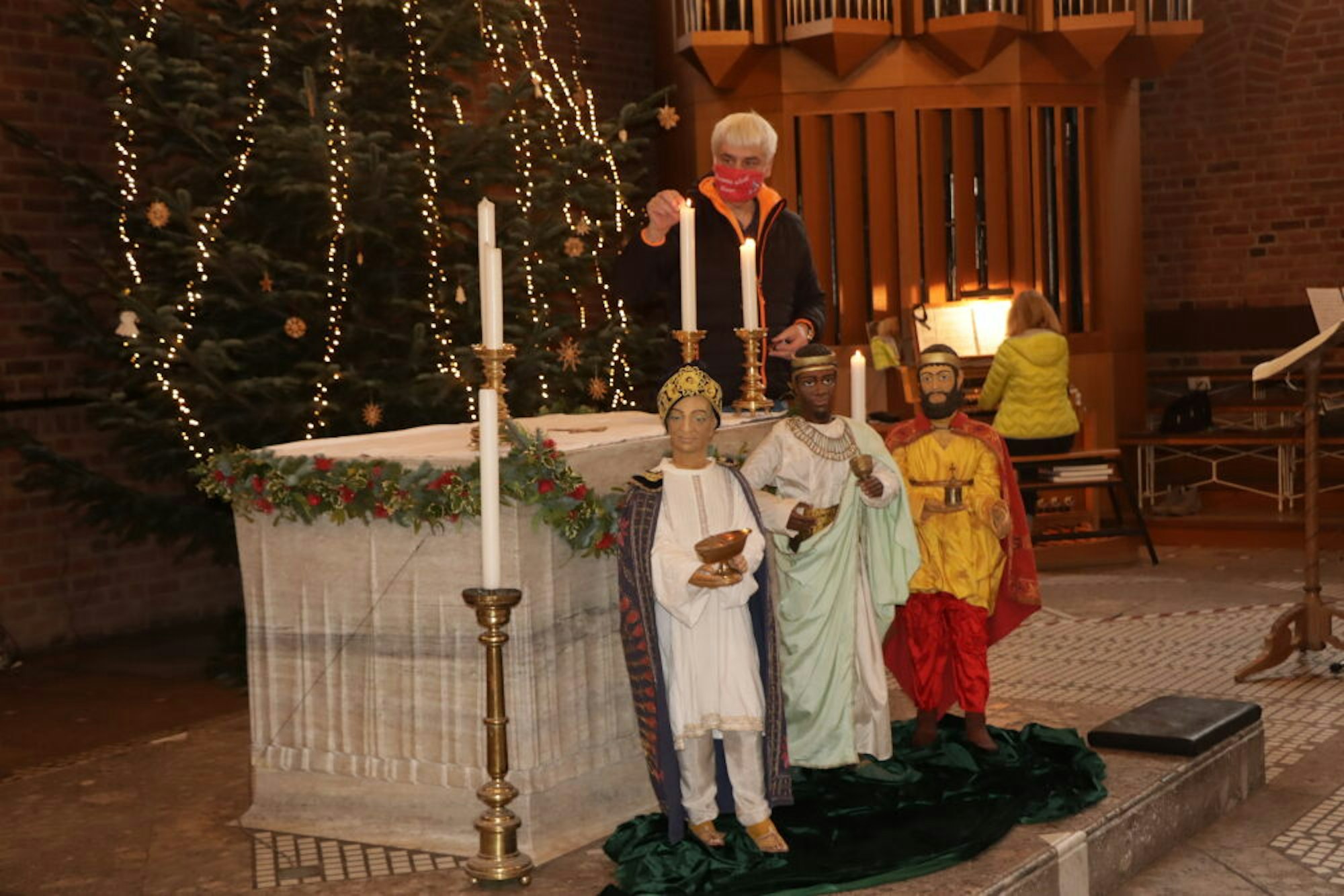 Inzwischen haben sich die Heiligen Drei Könige dem Stern über der Krippe folgend auf den Weg gemacht. Noch stehen sie in der Kirche St. Andreas vor dem Altar einige Meter entfernt von der Krippe. „Doch am Dreikönigstag, am sechsten Januar, werden sie an der Krippe sein“, sagt der Diakon.